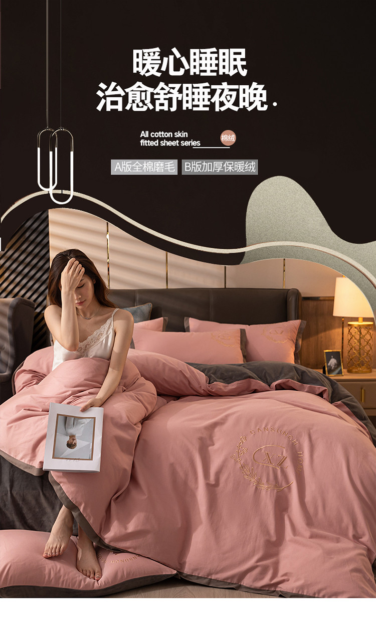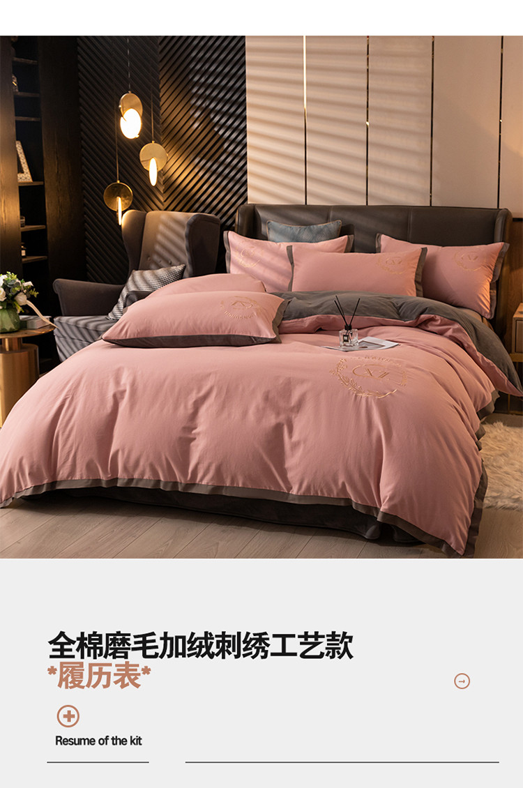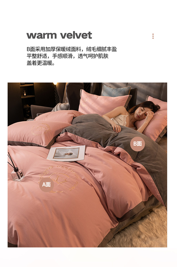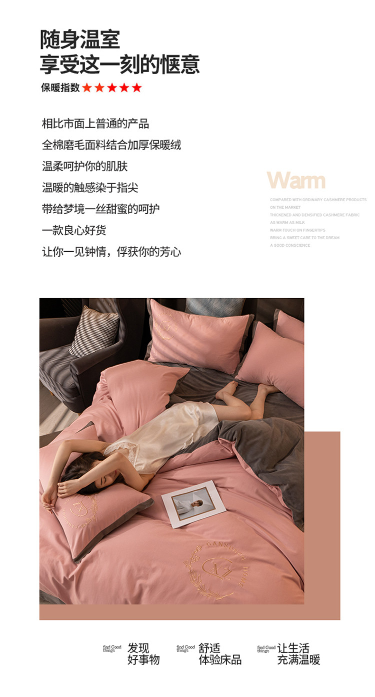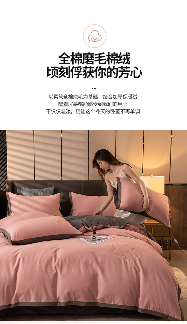 商品名称:蓝米卡夫 2024冬季升级款保暖全棉磨毛牛奶绒刺绣四件套 玛莎拉红