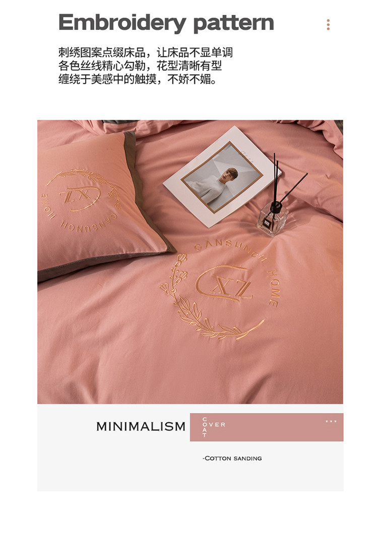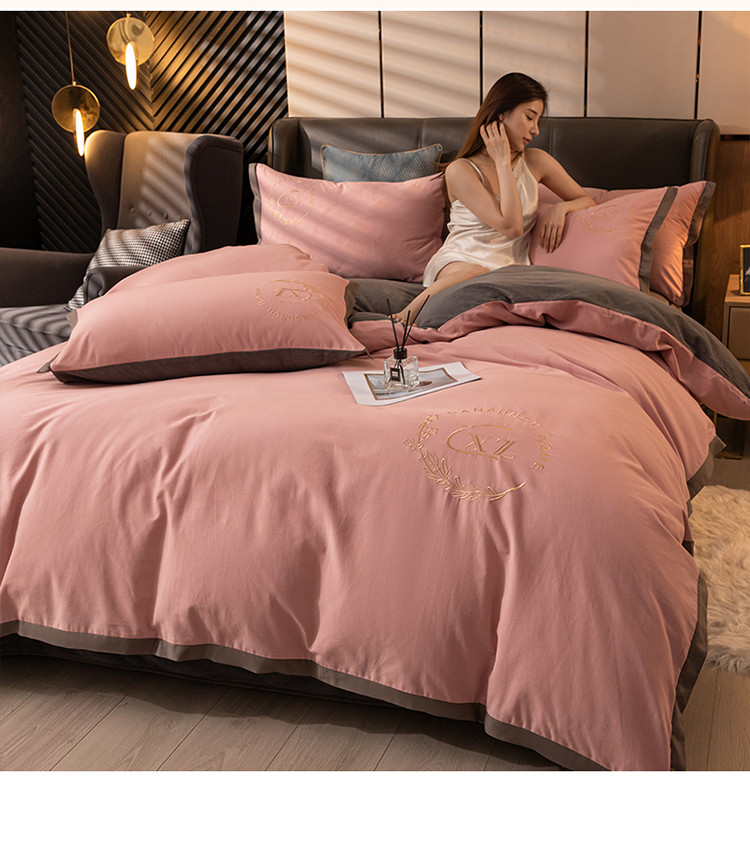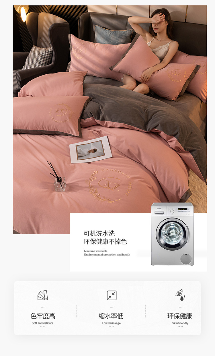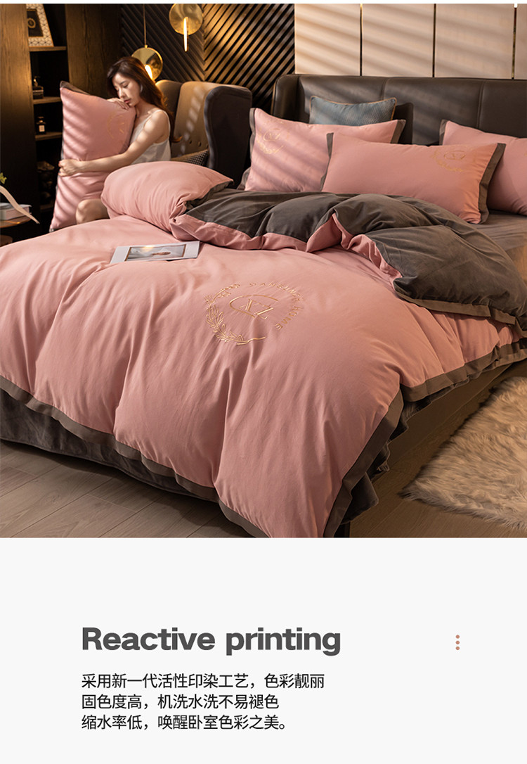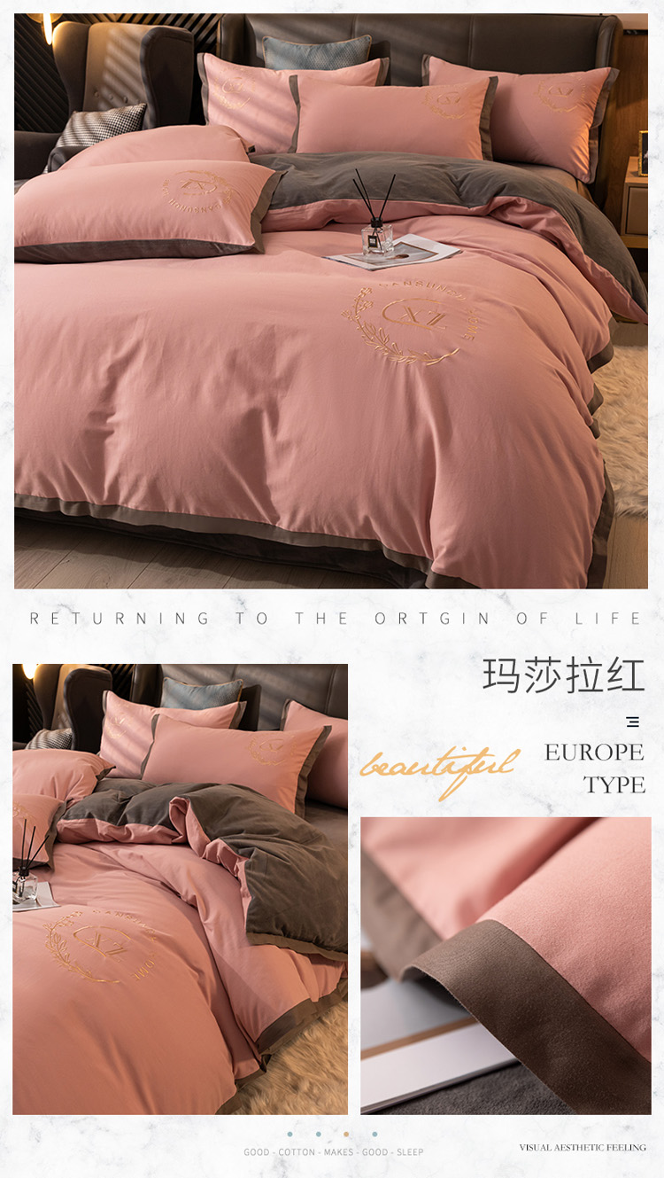 商品名称:蓝米卡夫 2024冬季升级款保暖全棉磨毛牛奶绒刺绣四件套 玛莎拉红