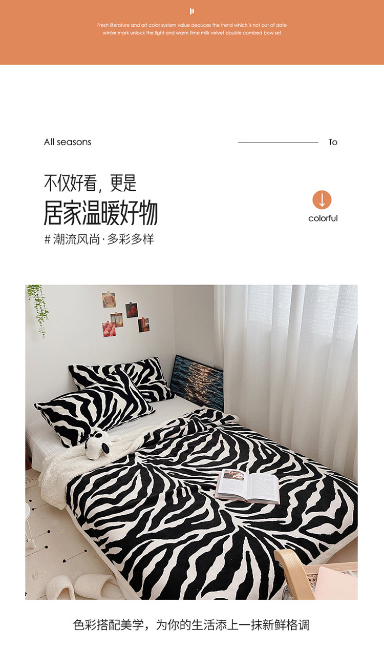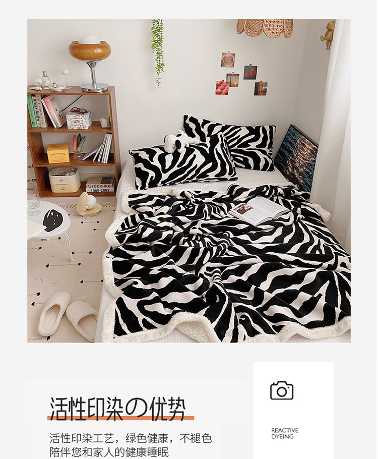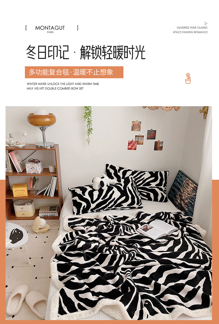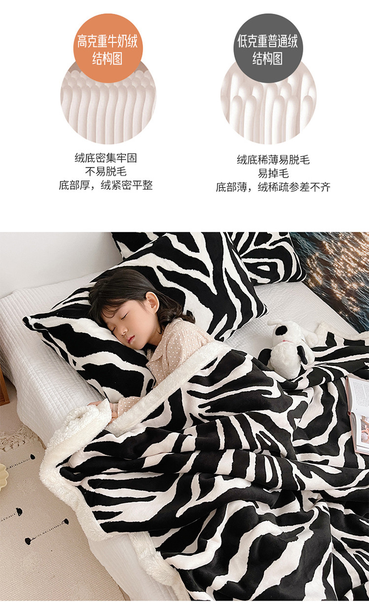 商品名称:雅居纺 2022新款A版牛奶绒B版羊羔绒复合毯 斑马纹