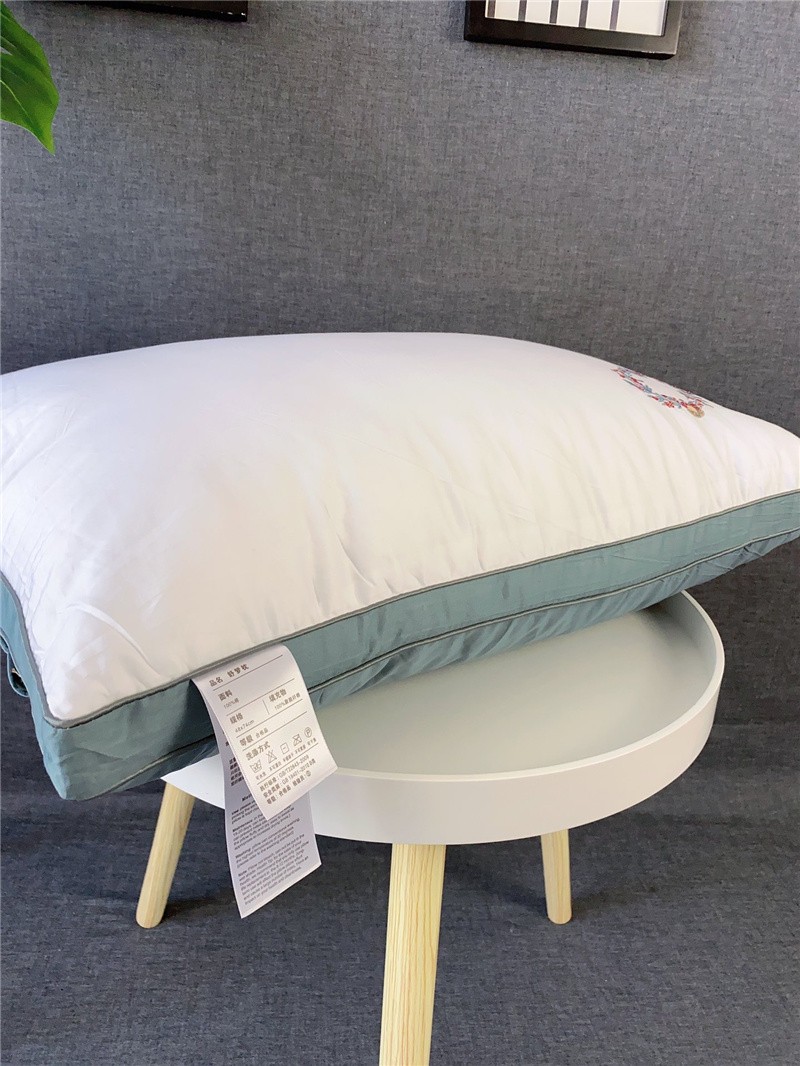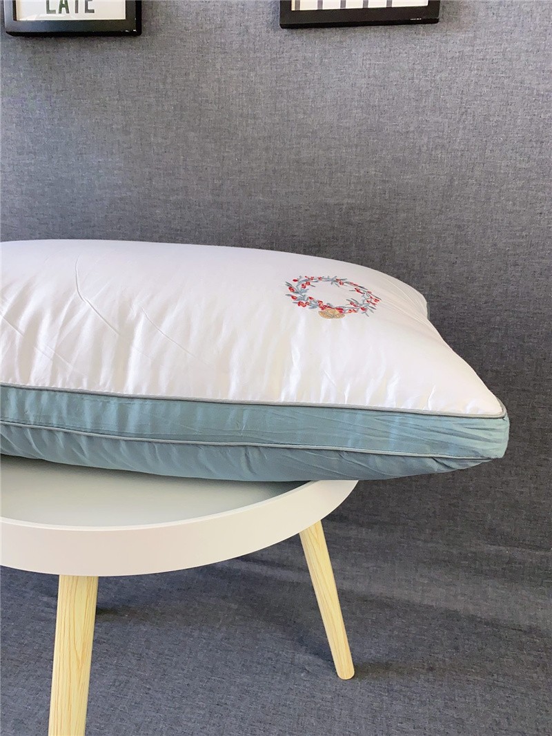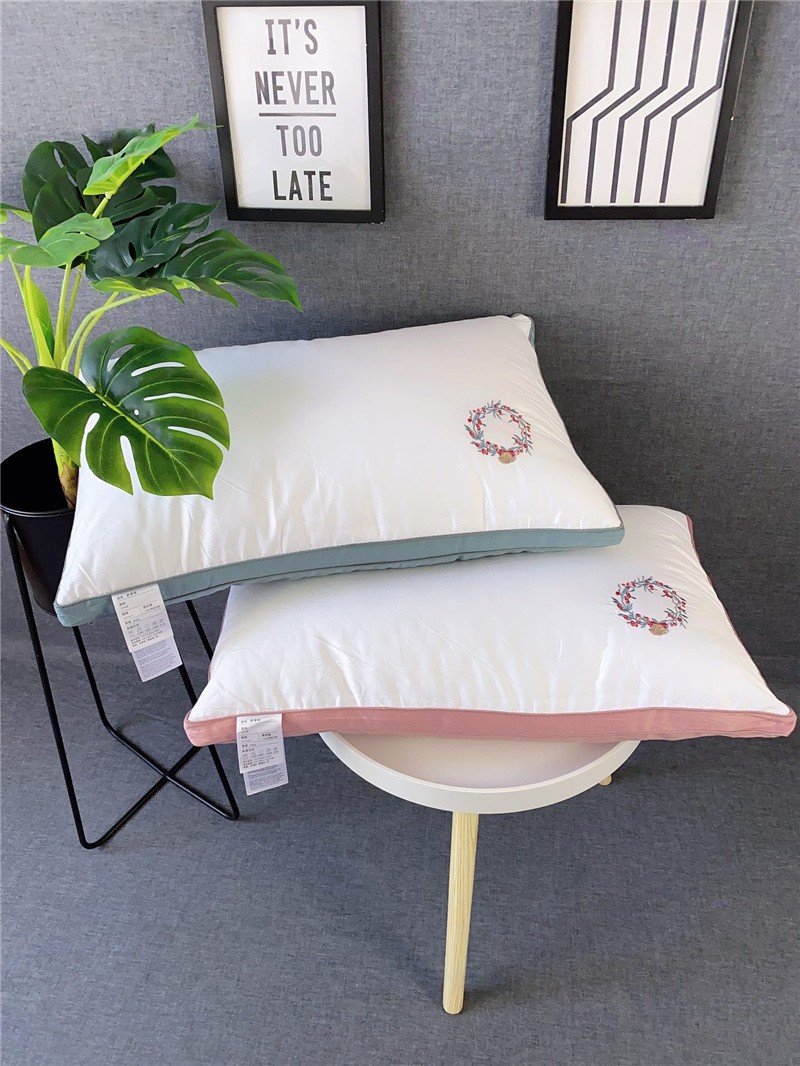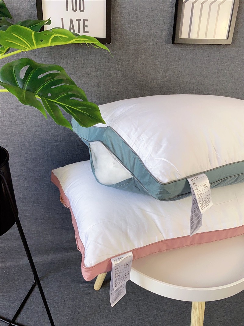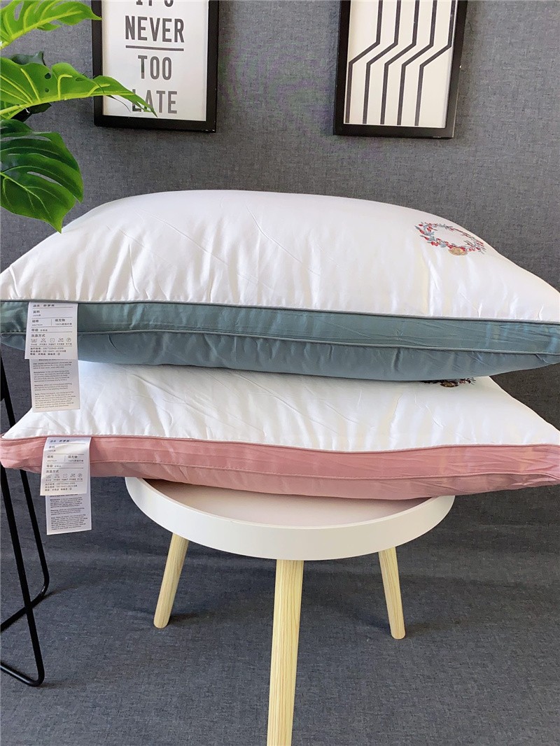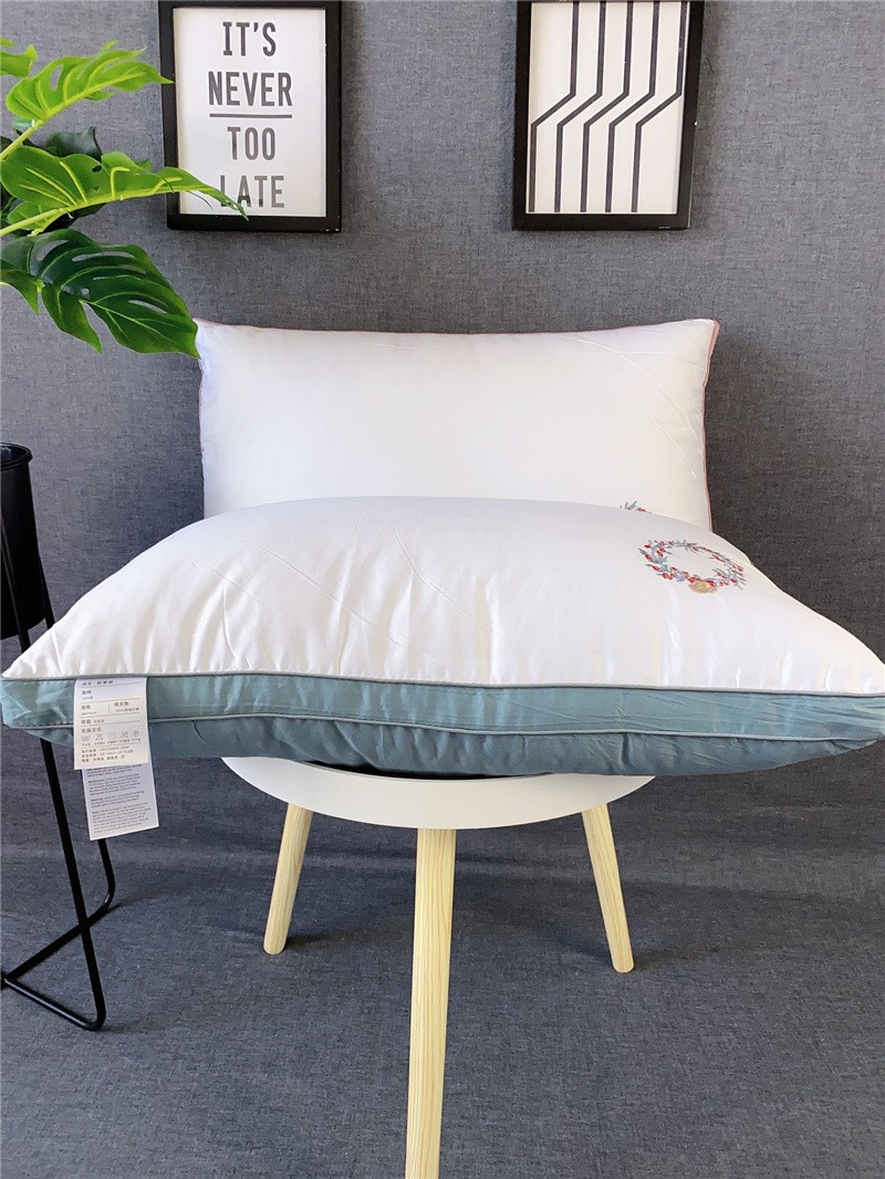 商品名称:全棉花环长绒棉刺绣撞色羽丝绒可水洗枕芯酒店枕头(两色)
