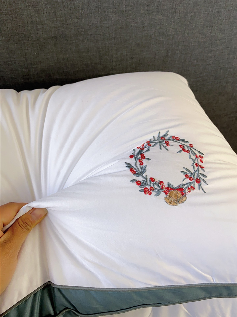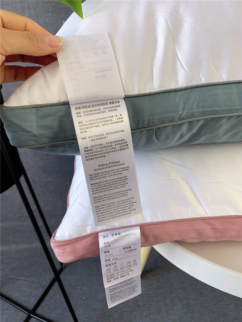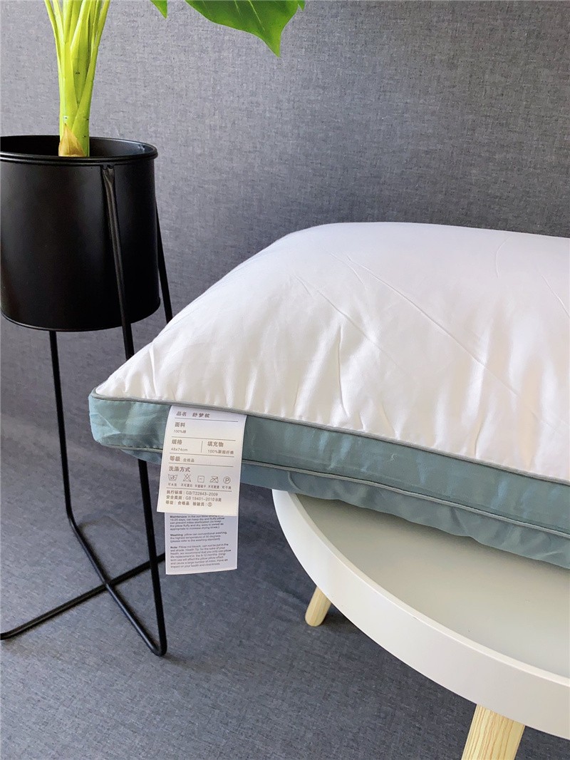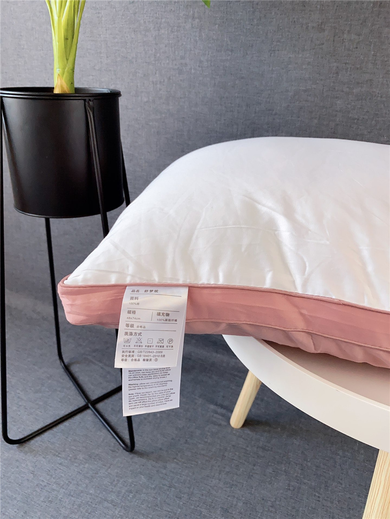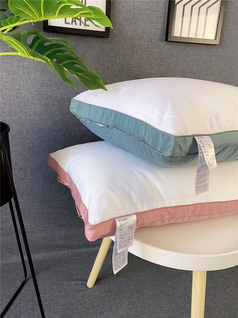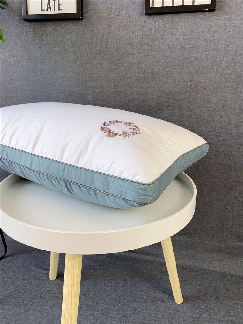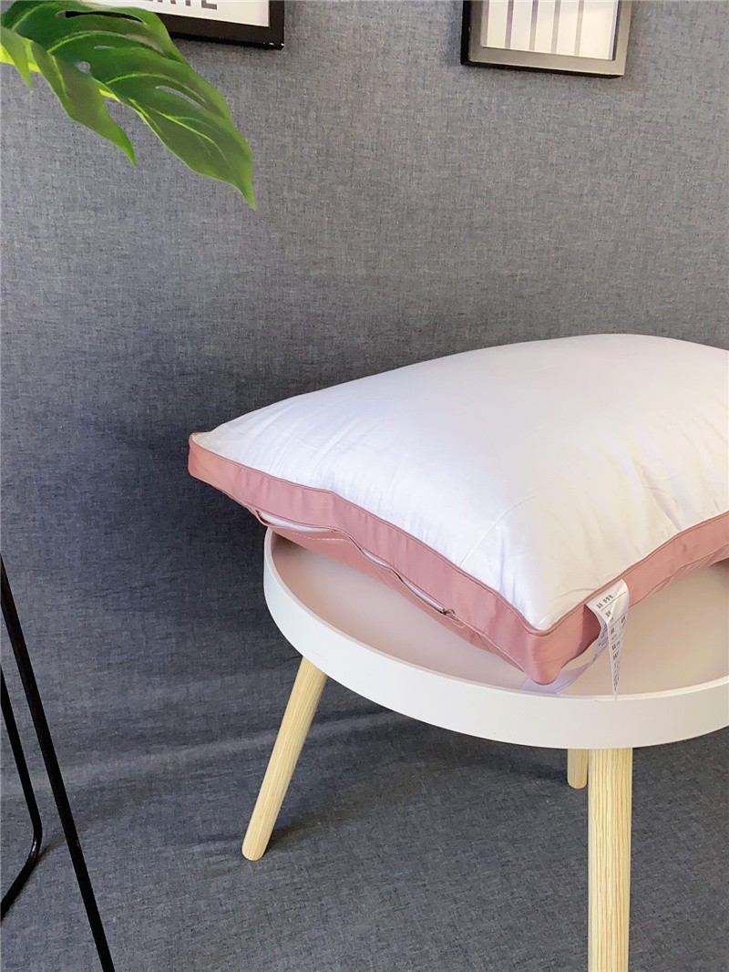 商品名称:全棉花环长绒棉刺绣撞色羽丝绒可水洗枕芯酒店枕头(两色)