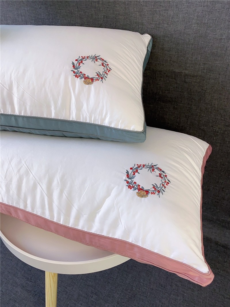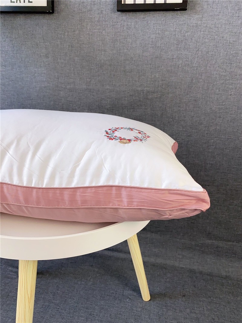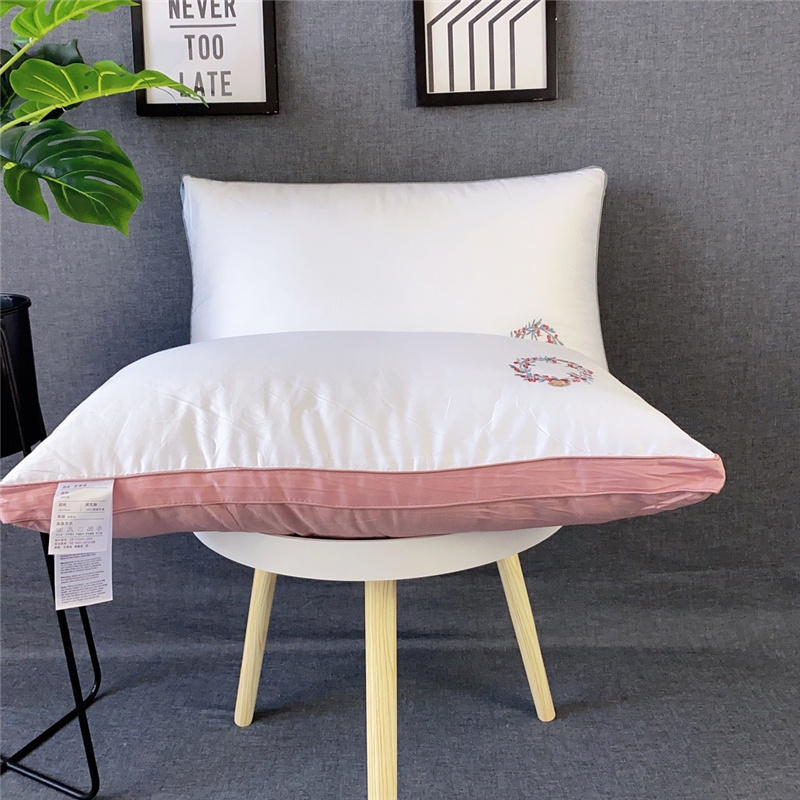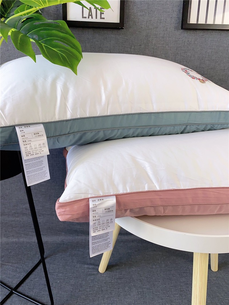 全棉花环长绒棉刺绣撞色羽丝绒可水洗枕芯酒店枕头(两色)