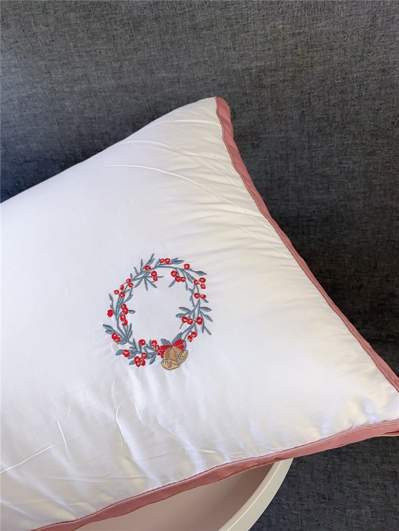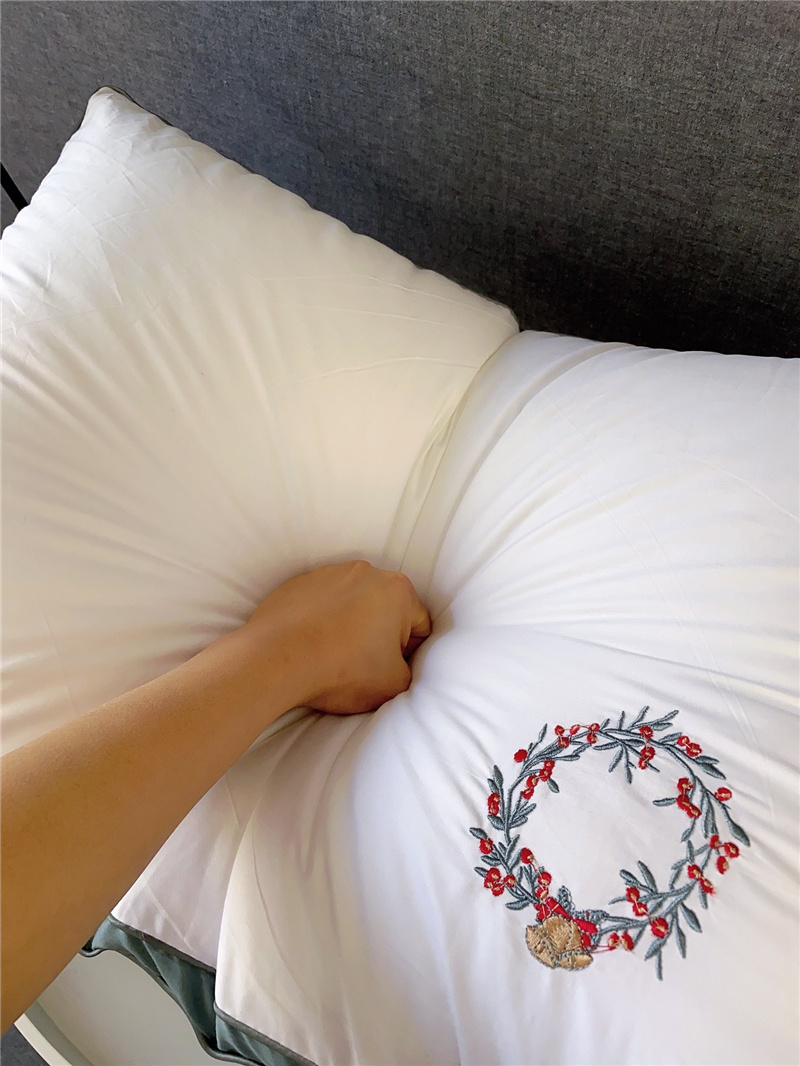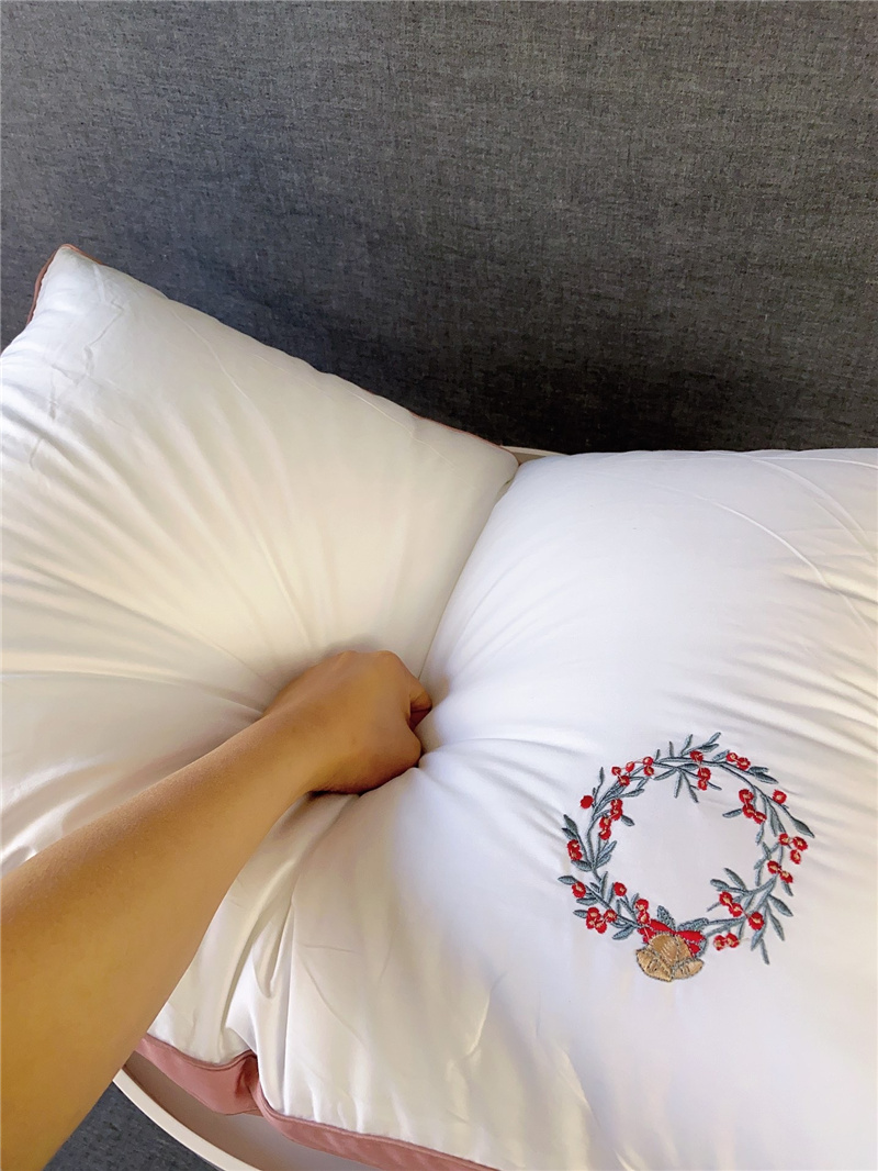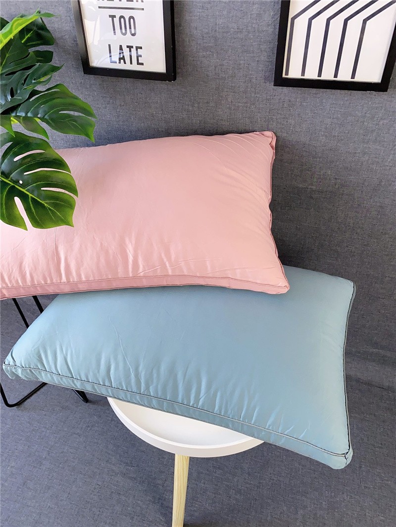 全棉花环长绒棉刺绣撞色羽丝绒可水洗枕芯酒店枕头(两色)