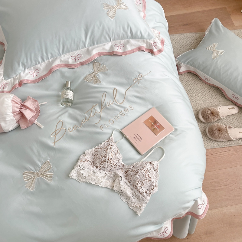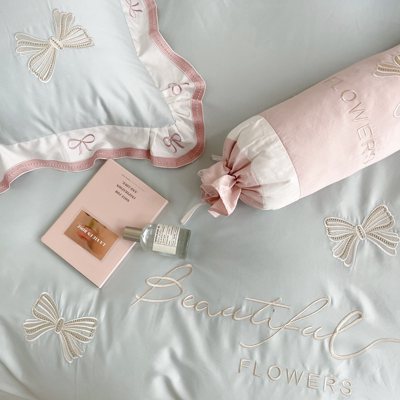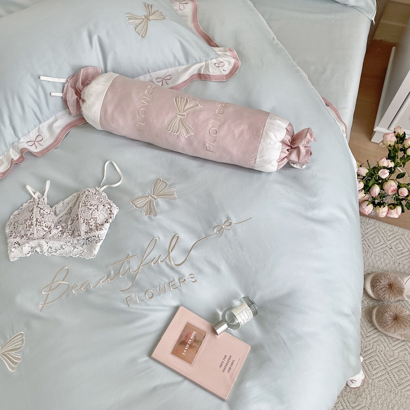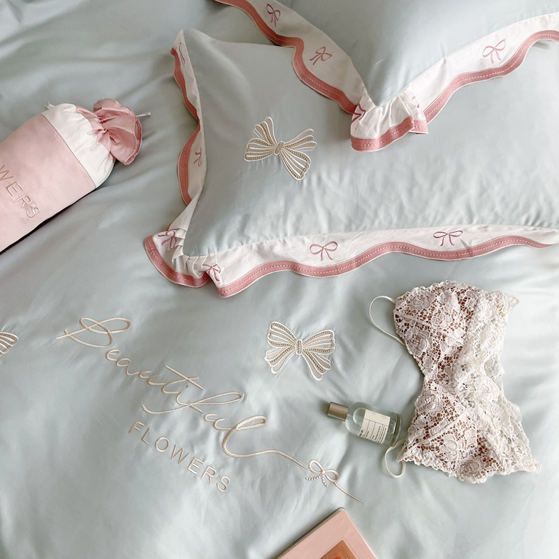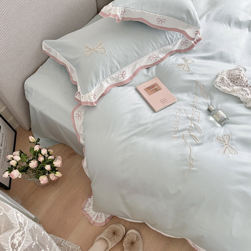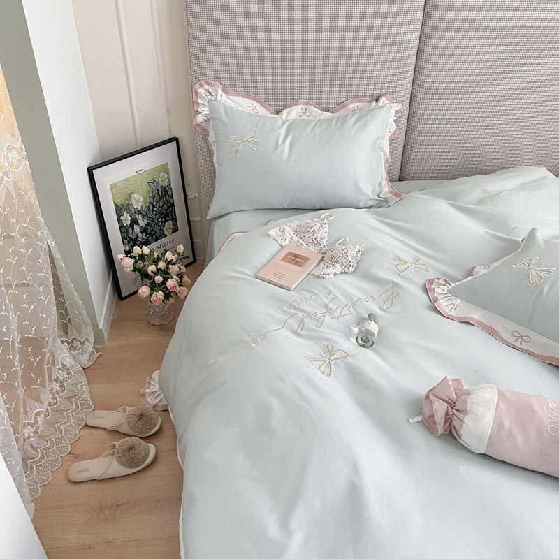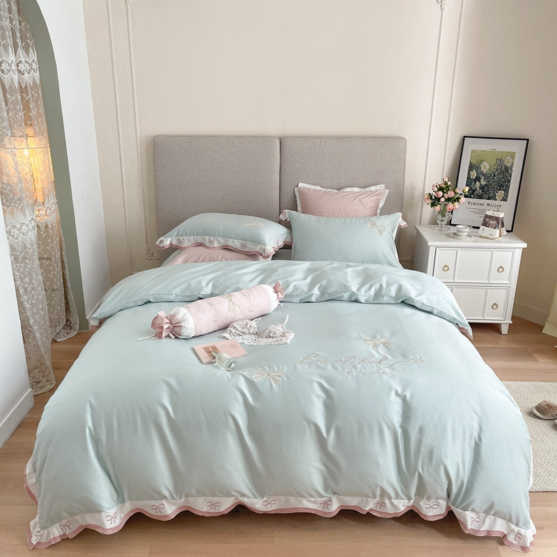 商品名称:柚子2021新款高端100支澳棉贡缎刺绣四件套 樱柠-星冰绿