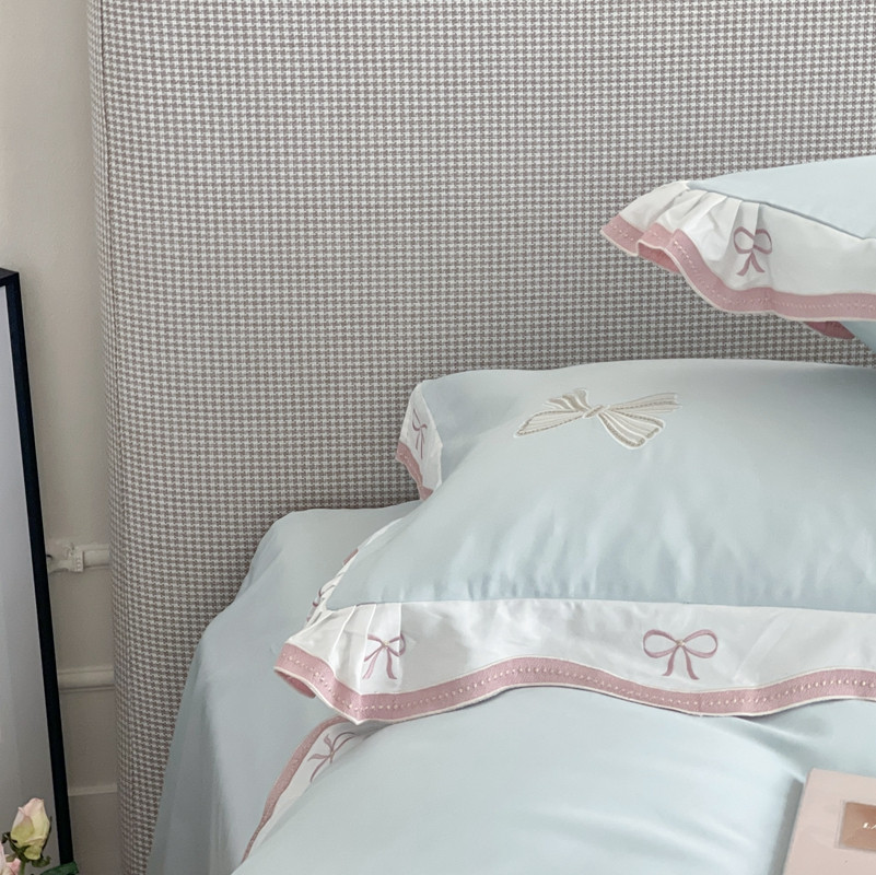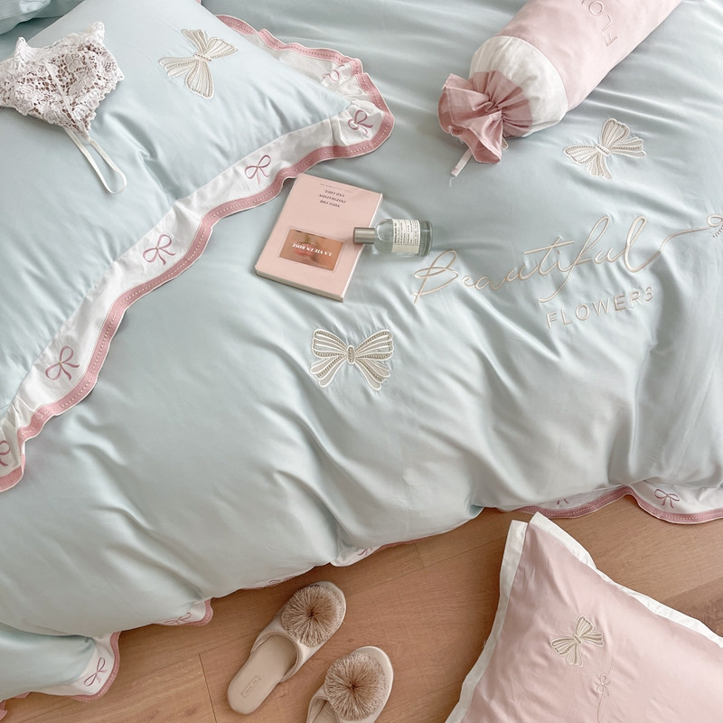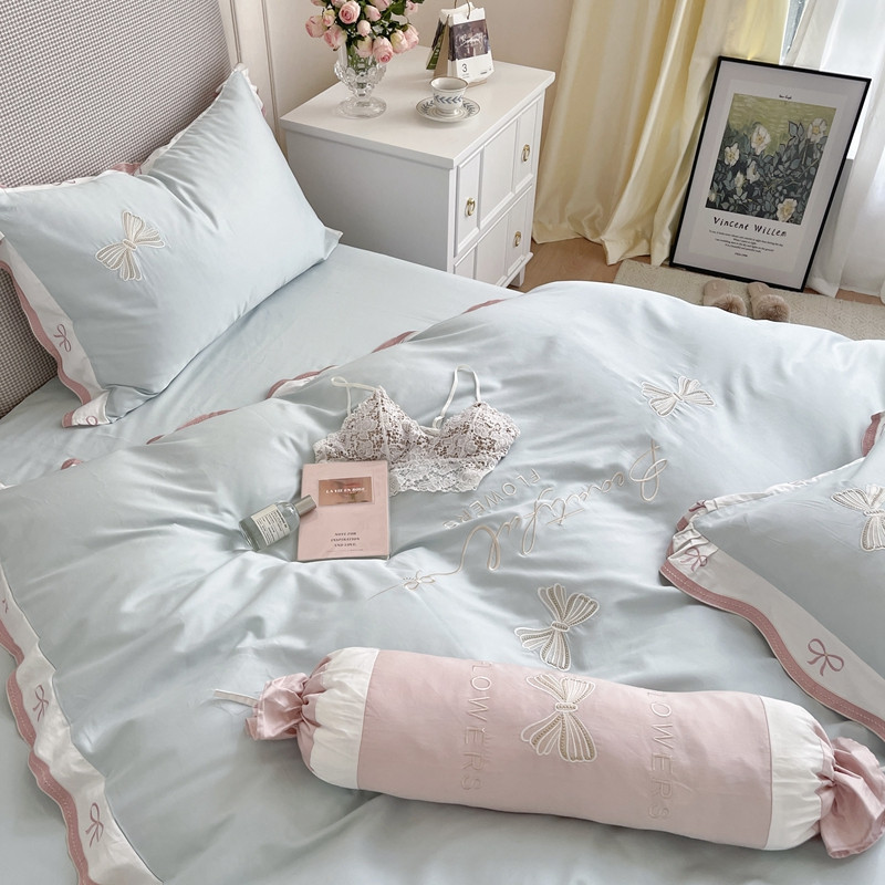 (总)柚子YOUTH 225新款全棉双层纱球球款四件套,薄荷绿条,波点霉霉,波点小丑,蓝心,芊芊结,碎花点点