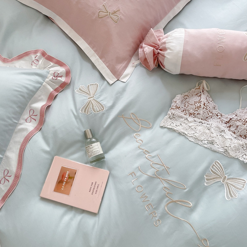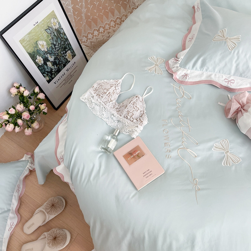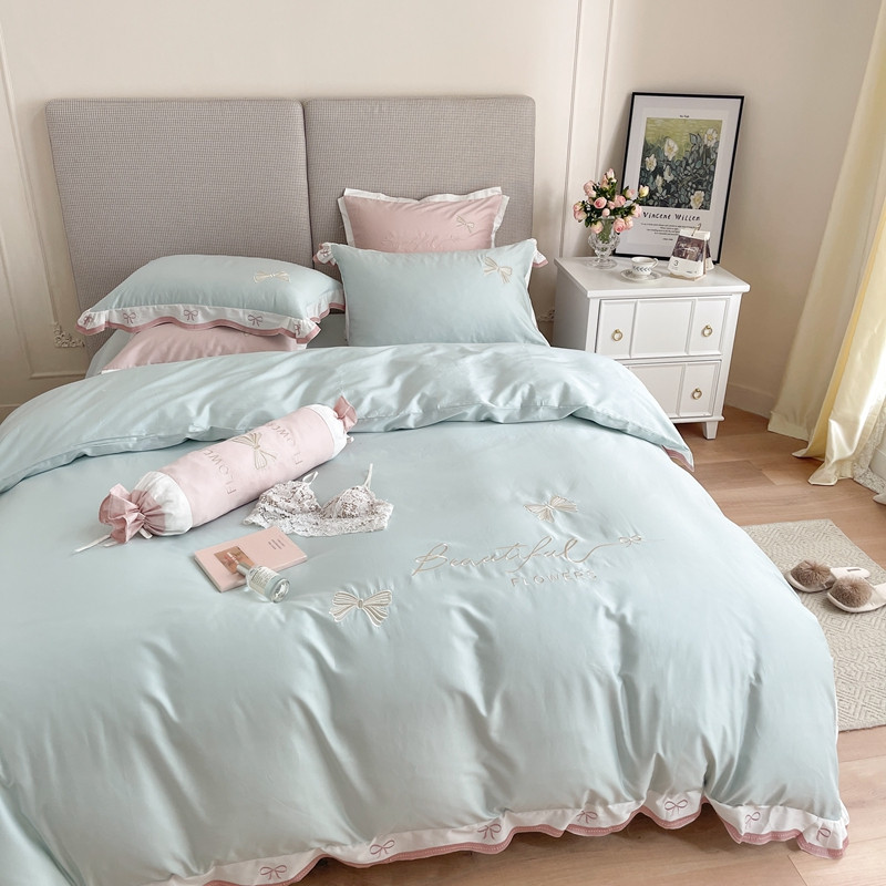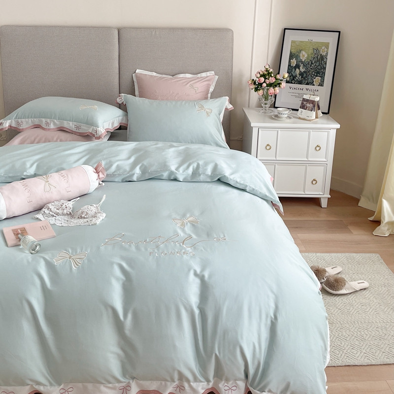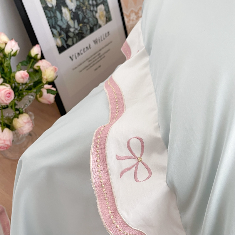 柚子2021新款高端100支澳棉贡缎刺绣四件套 樱柠-星冰绿