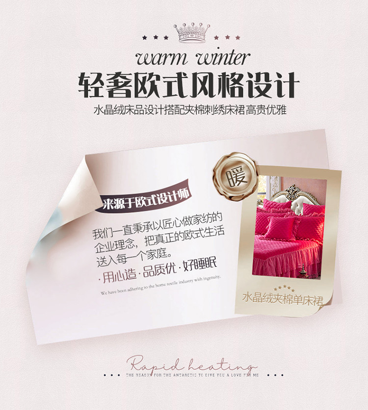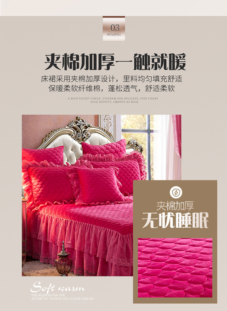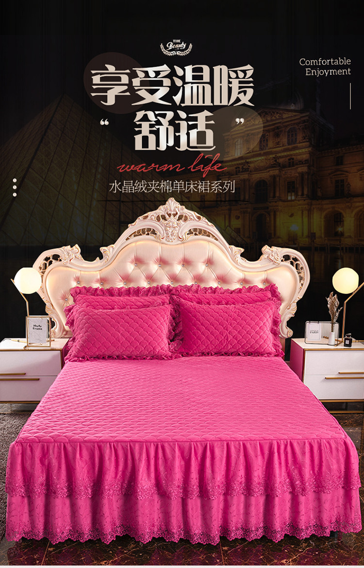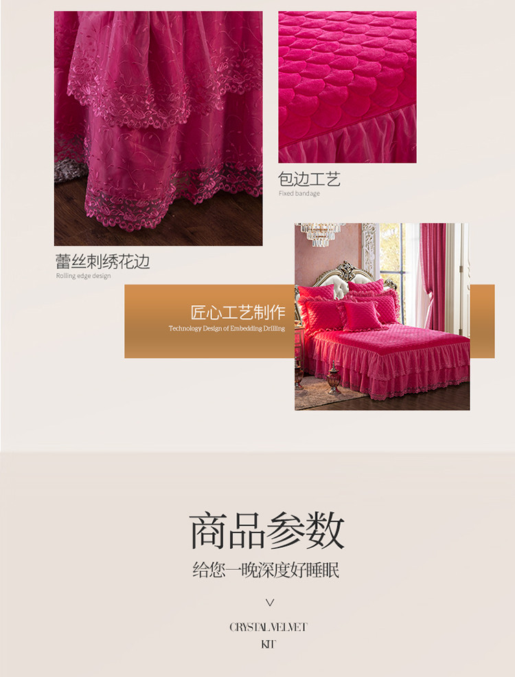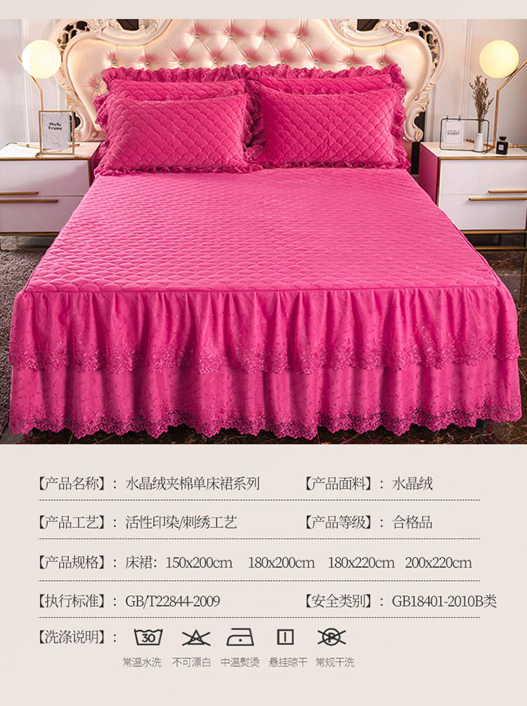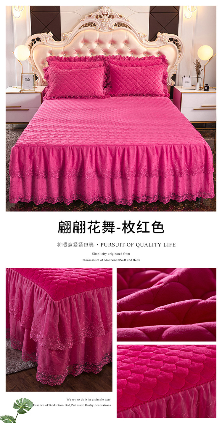 • 91家纺网 家纺一手货源 找家纺 恒爱 2021新款水晶绒夹棉刺绣单床裙 翩翩花舞-枚红色