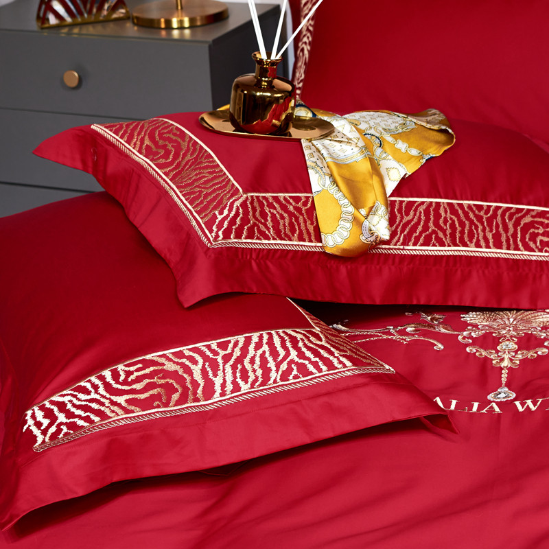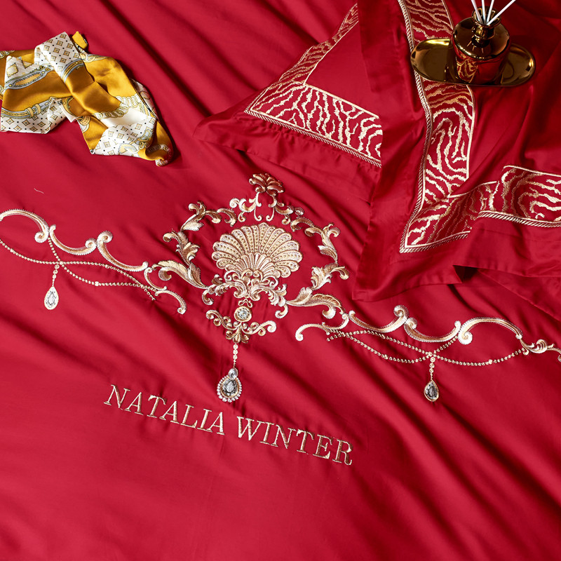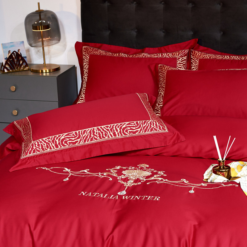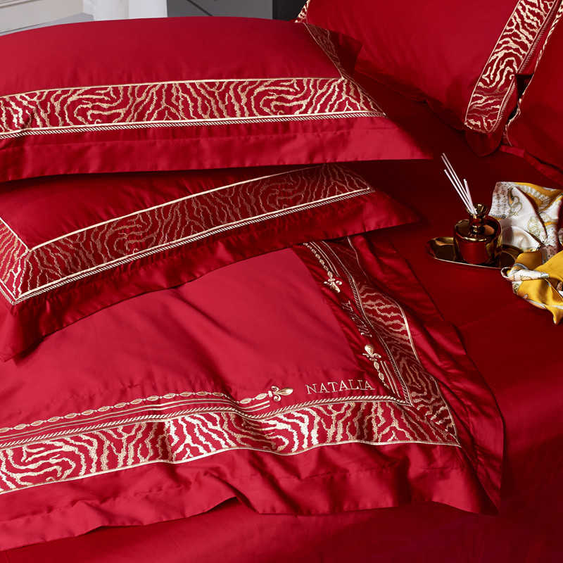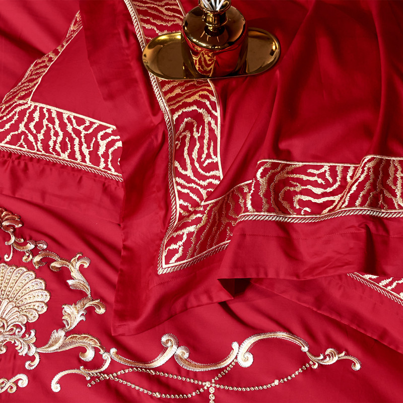 星尚 2021新款秋冬100支长绒棉四件套-拉斐尔 大红