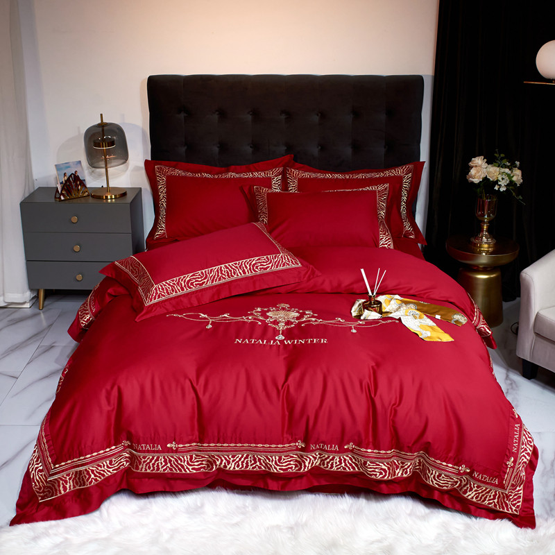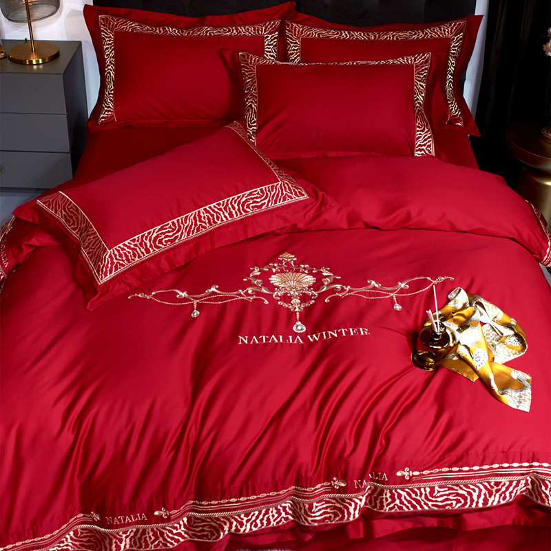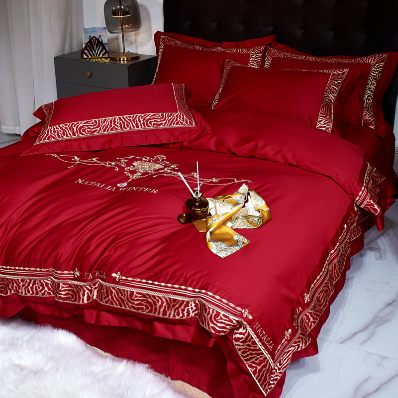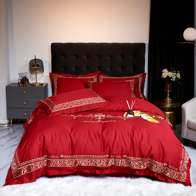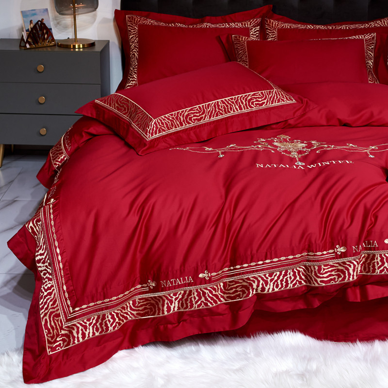 星尚 2021新款秋冬100支长绒棉四件套-拉斐尔 大红