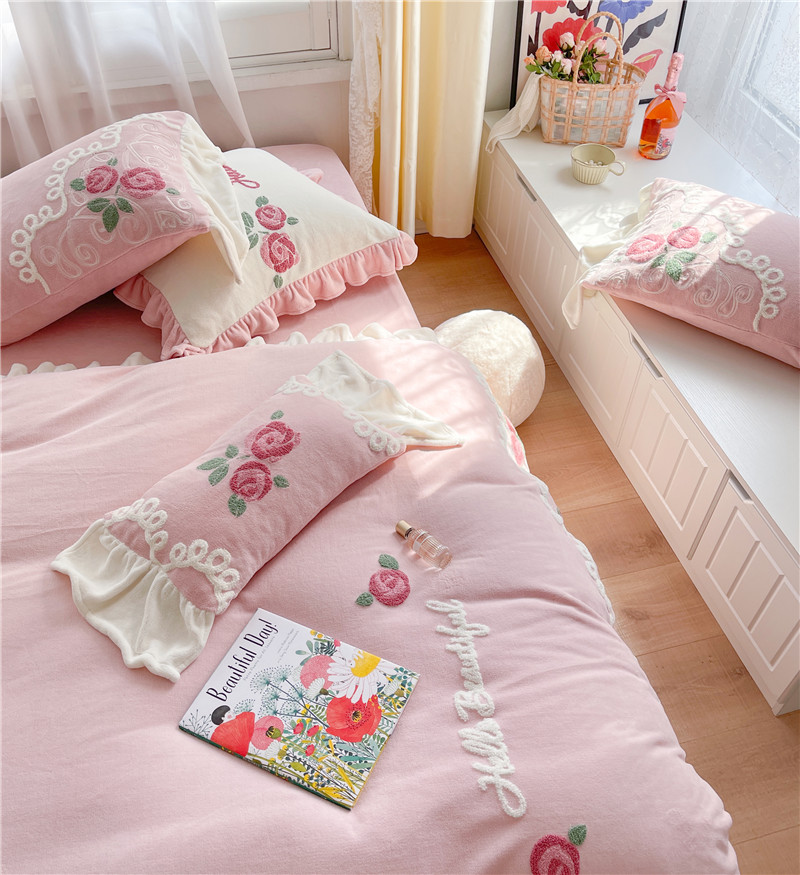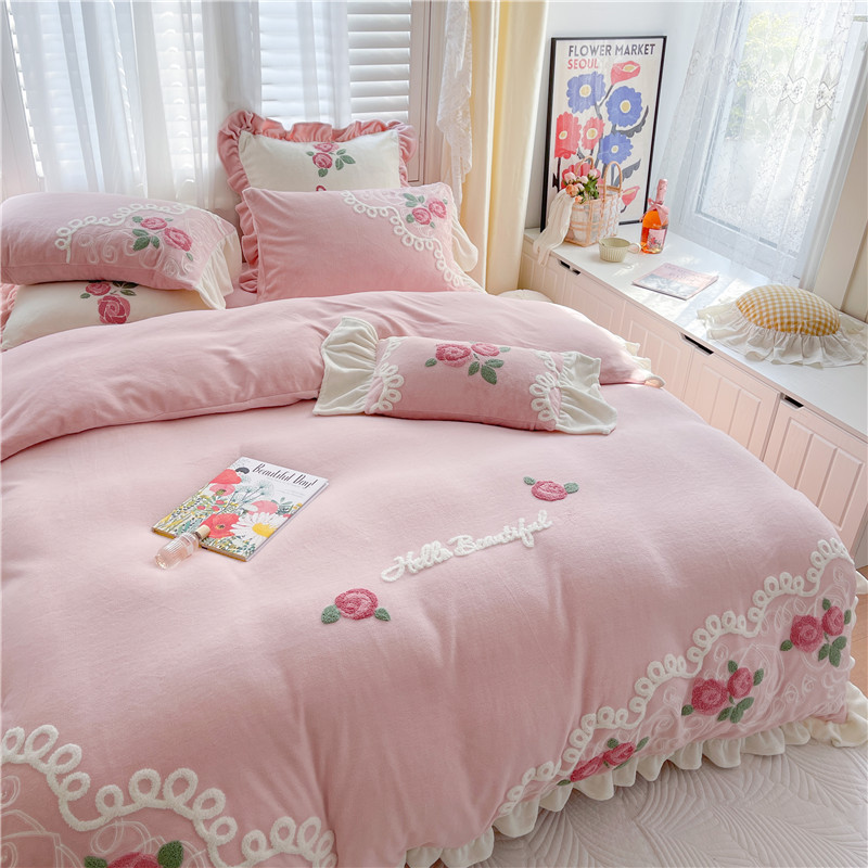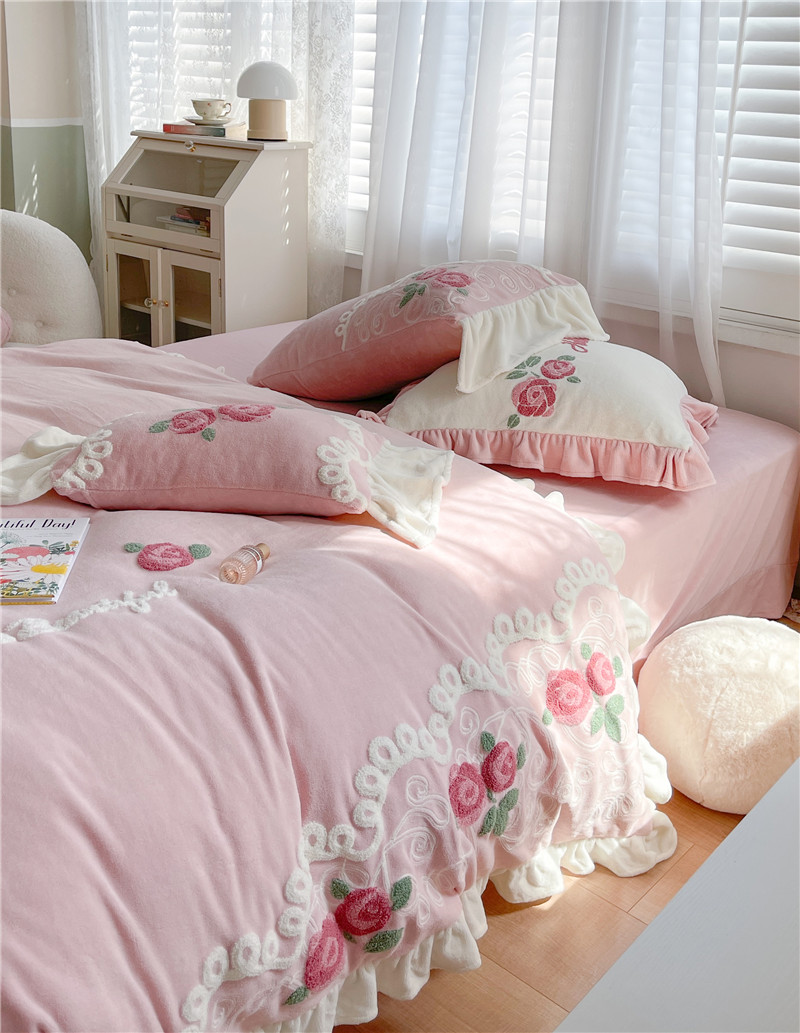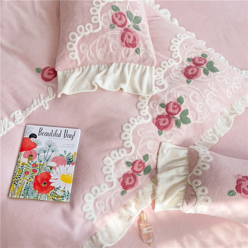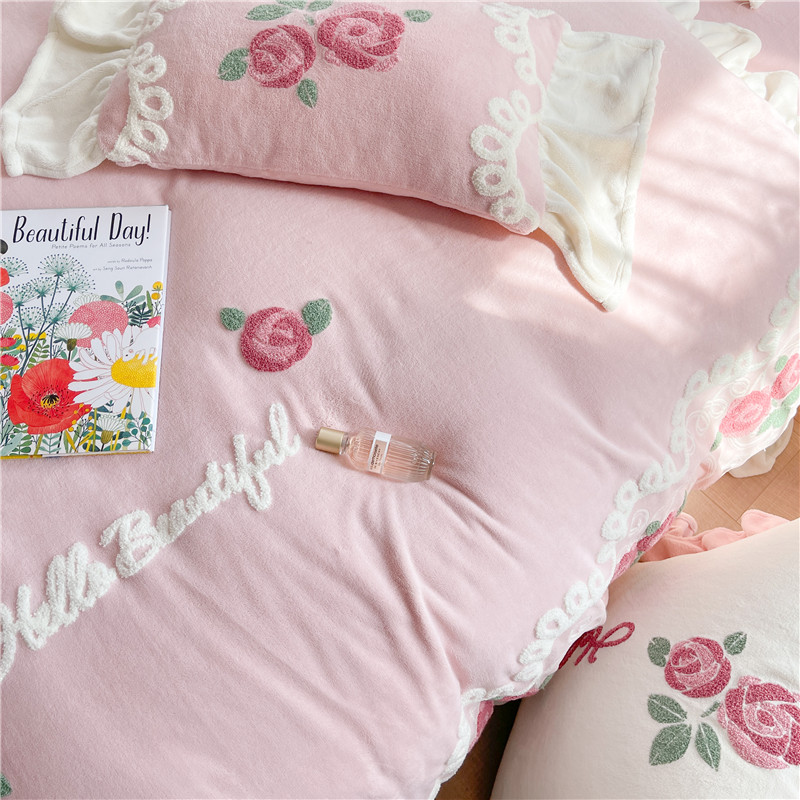 商品名称:(总)星野 2021新款高克重全消光牛奶绒四件套-水漾玫瑰