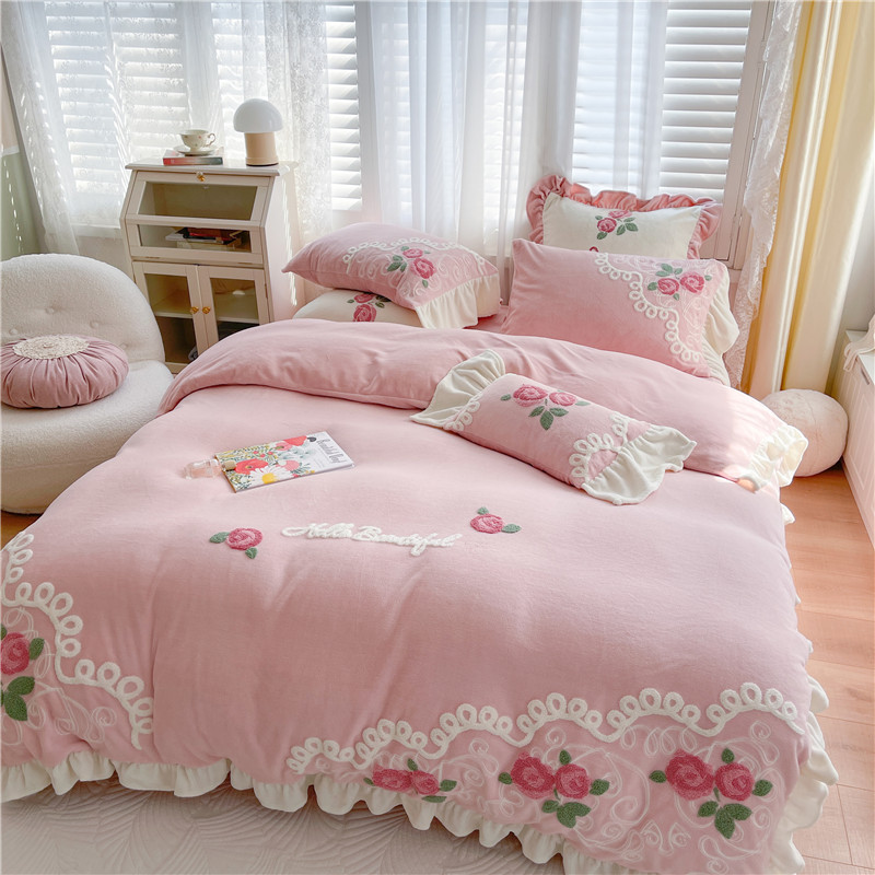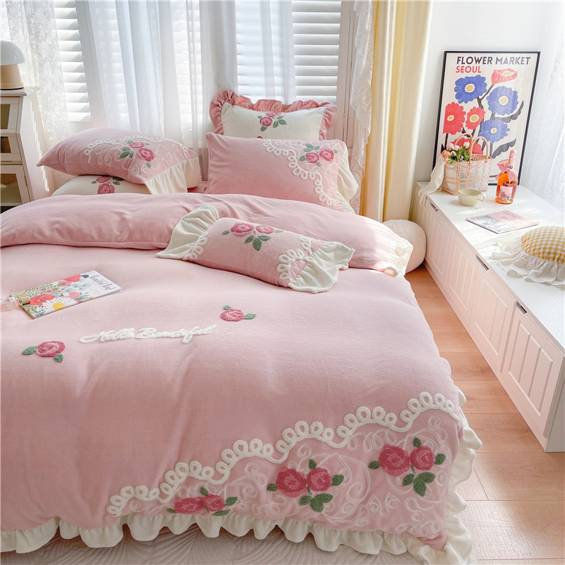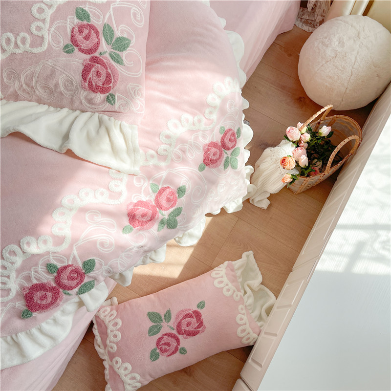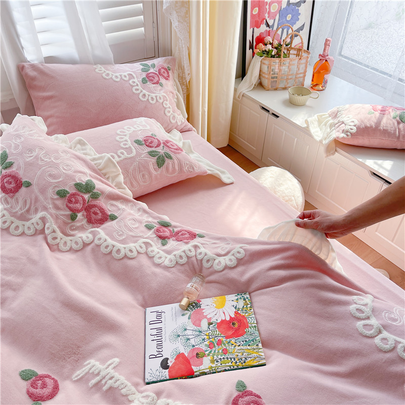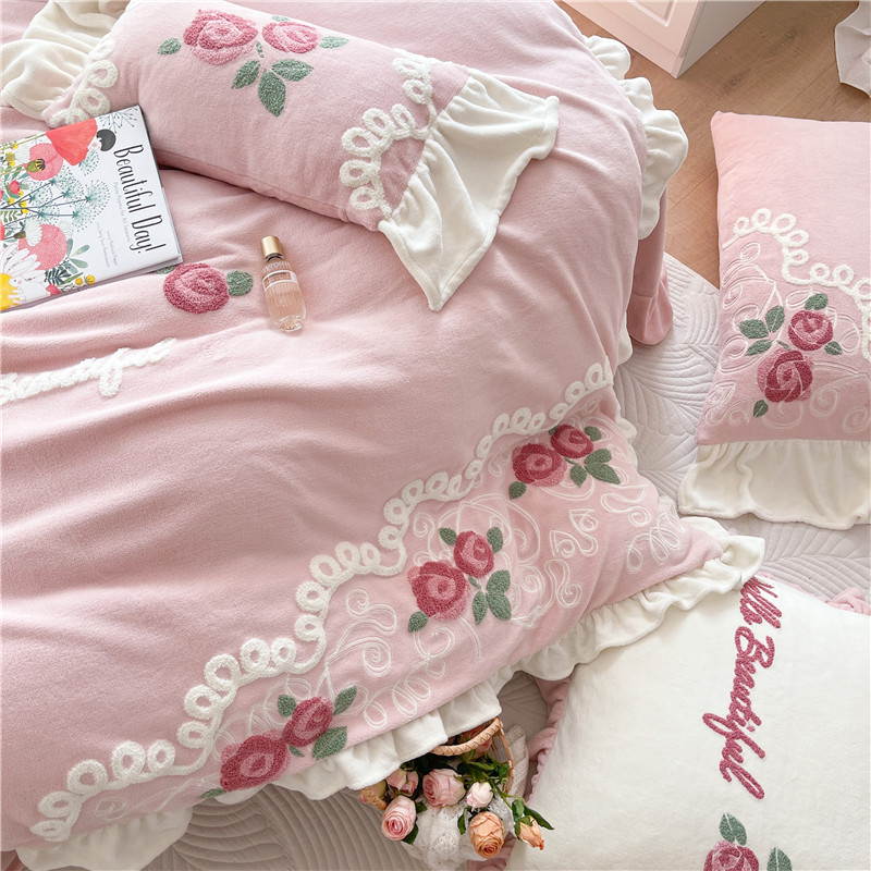 商品名称:(总)星野 2021新款高克重全消光牛奶绒四件套-水漾玫瑰