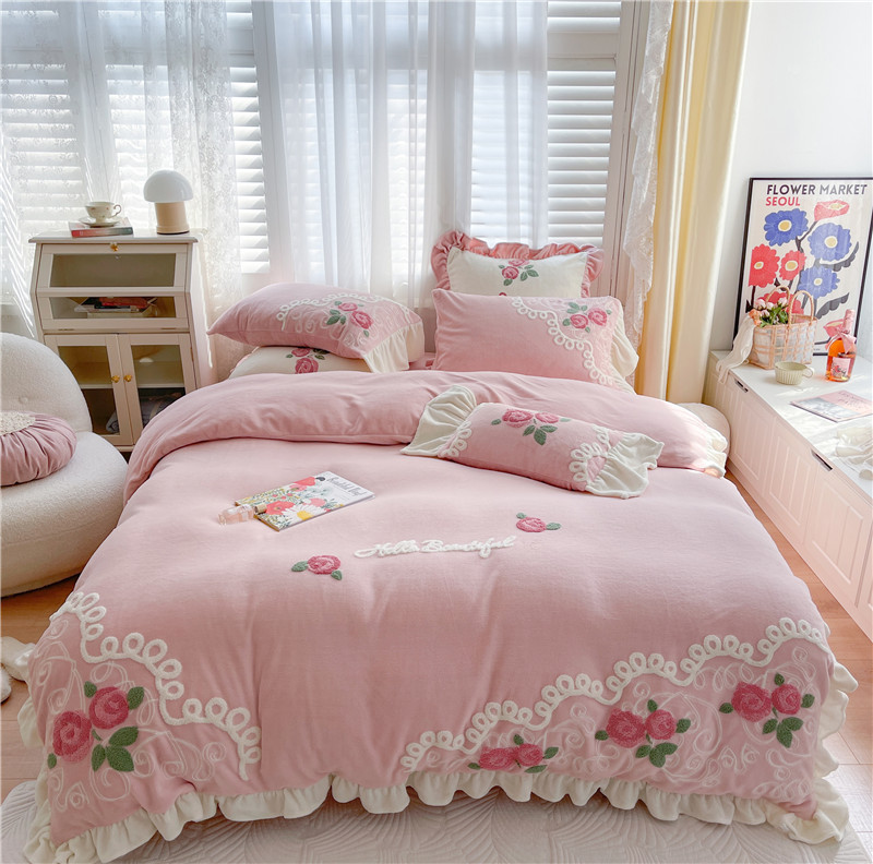 (总)星野 2021新款高克重全消光牛奶绒四件套-水漾玫瑰