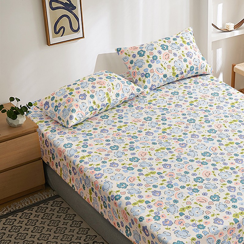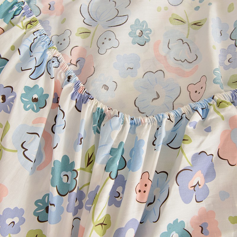 茉夕家纺 2021新款全棉印花床笠 花丛中