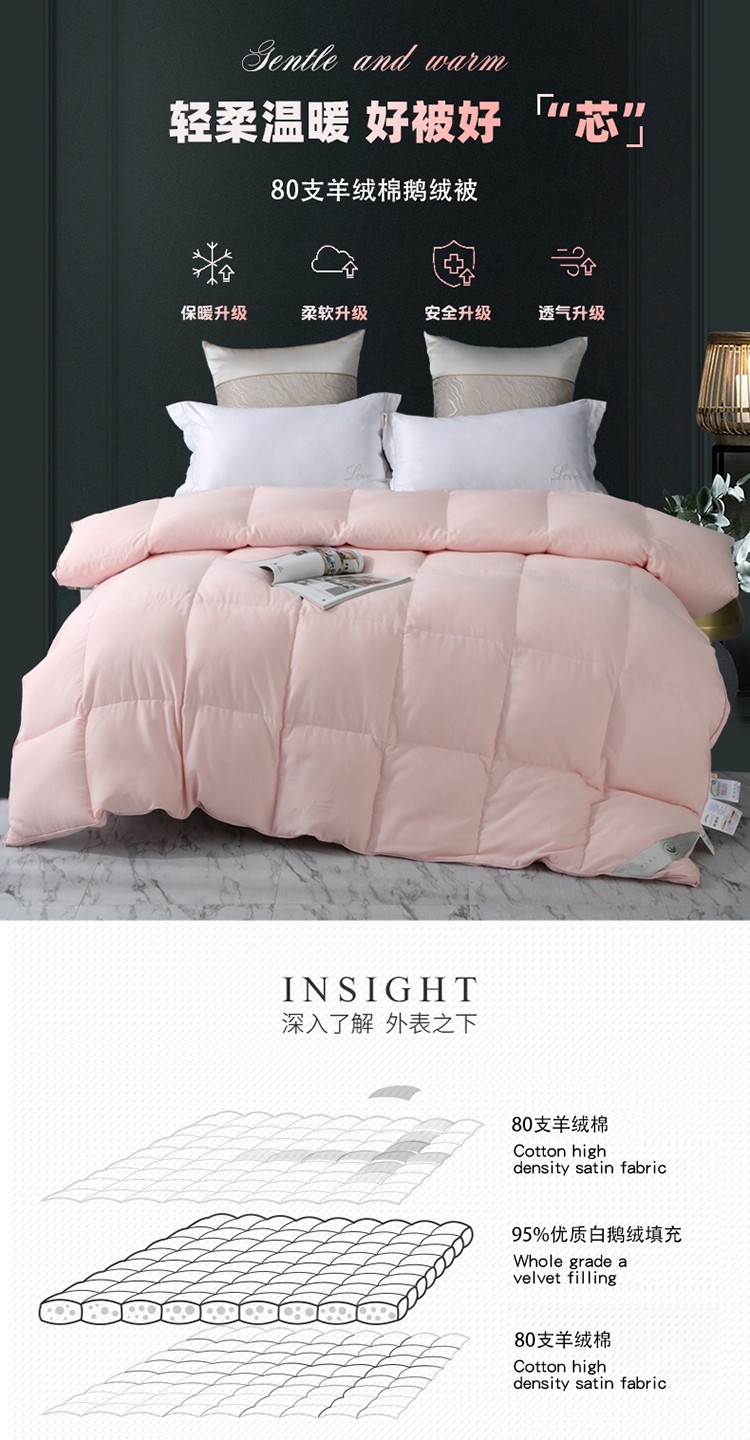 商品名称:总锦瑞羽绒 2024新款千鸟格80支羊绒棉鹅绒被冬被被子被芯