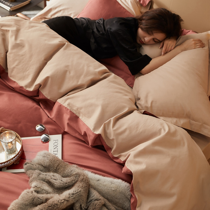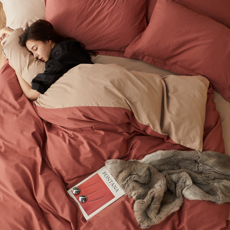 涞澳家纺 2021新款50支磨绒双拼四件套 暗红琥珀