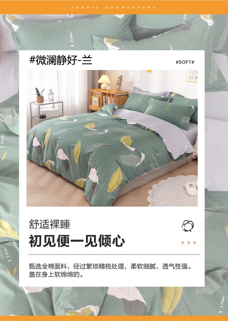 星期三2021年冬季新款铂金全棉13372四件套(加老板微信有会员价)微澜静好-兰
