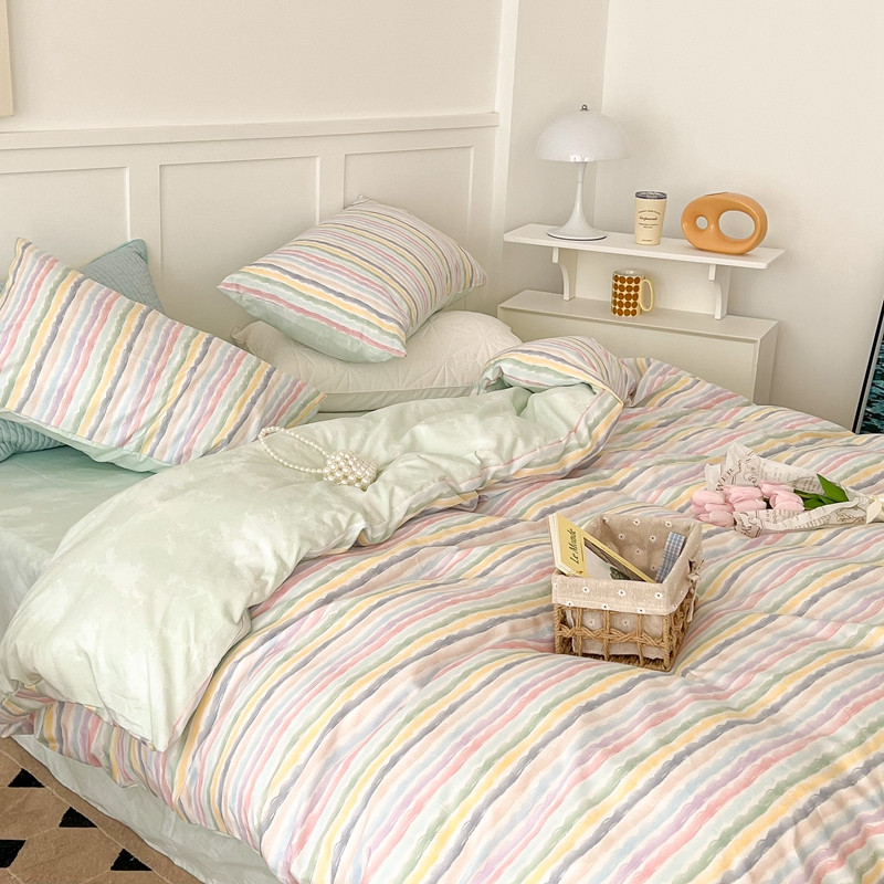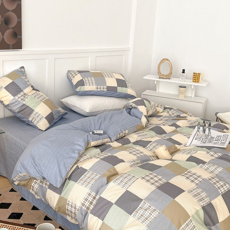 (总)昔可 2023新款全棉ins格子混搭系列四件套,ins简约绿格,粉蓝格,开心果格,学院格纹,粉绿格,海盐兰格,黄绿格,夏日蓝条,芝士黄条,紫芋泥芝士格