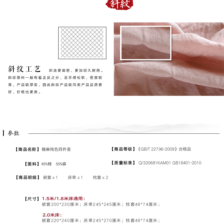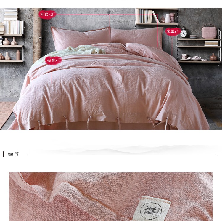 商品名称:简家居 2022新款55%亚麻45%棉四件套 海棠
