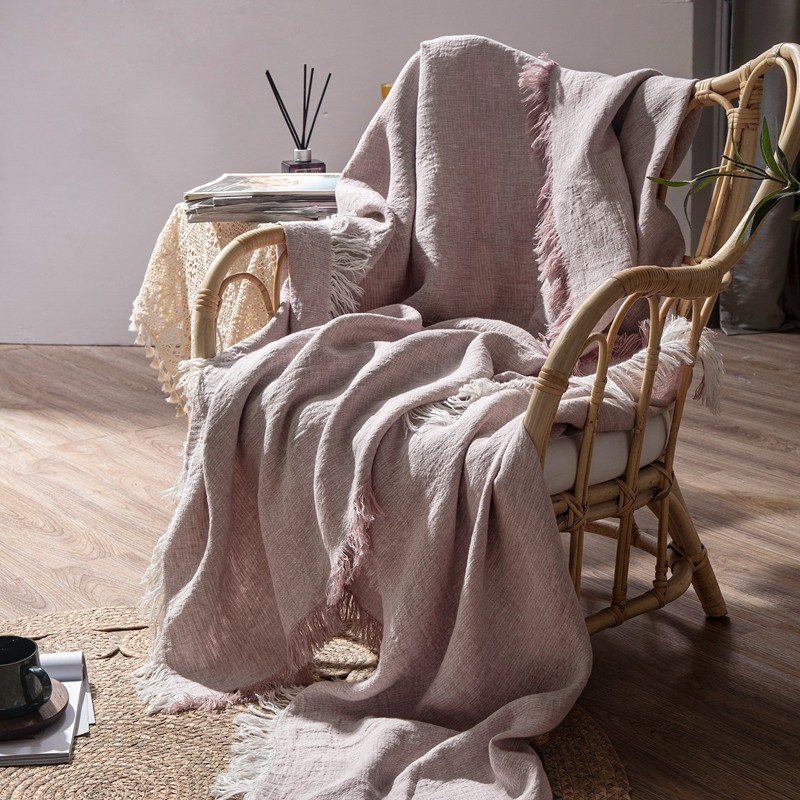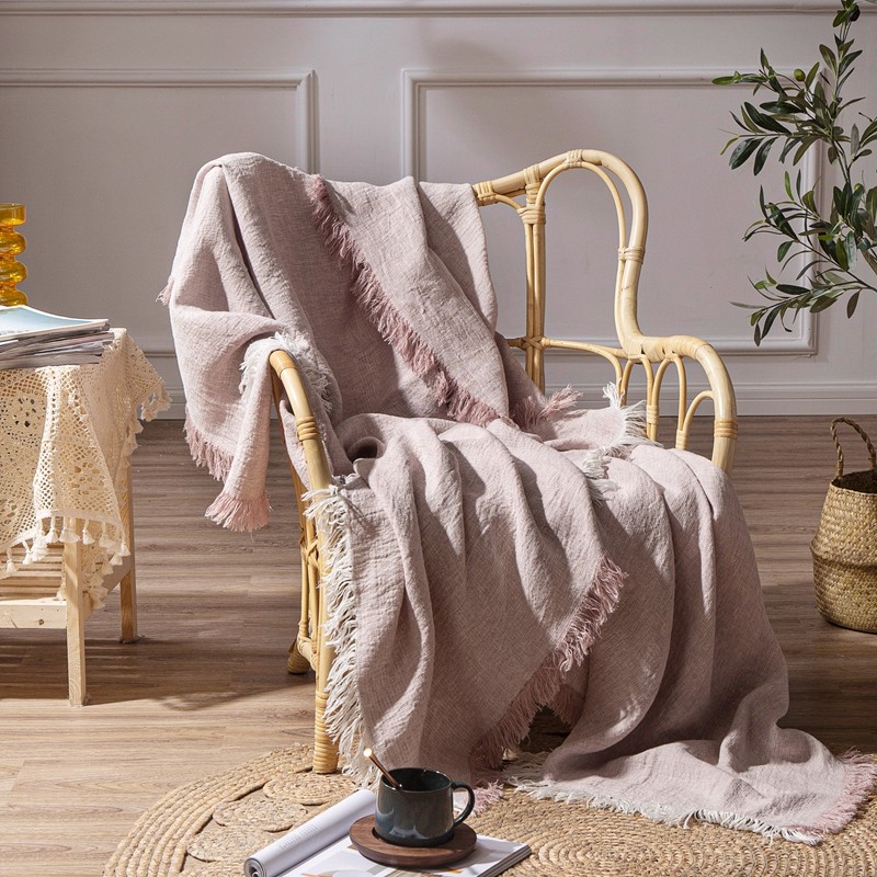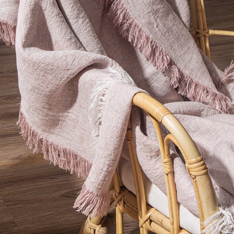 商品名称:简家居 2022新款纯亚麻流苏盖毯 皮粉色