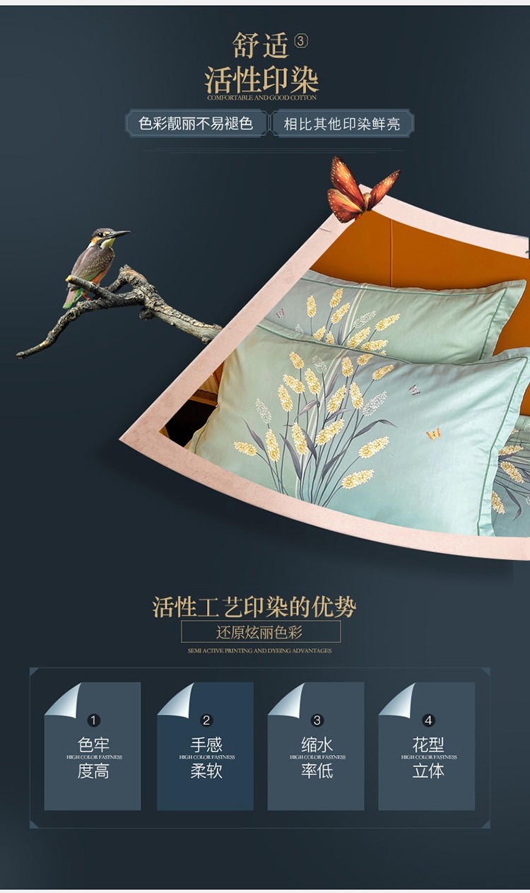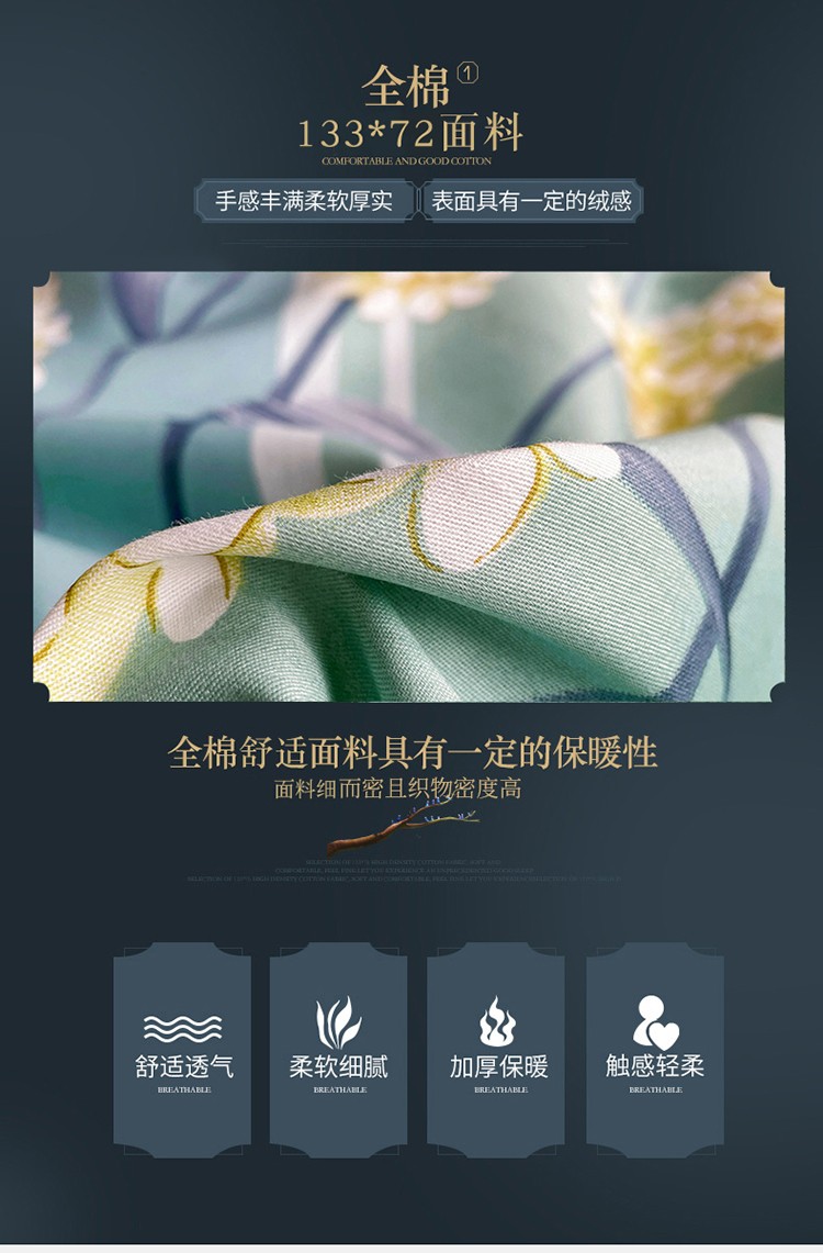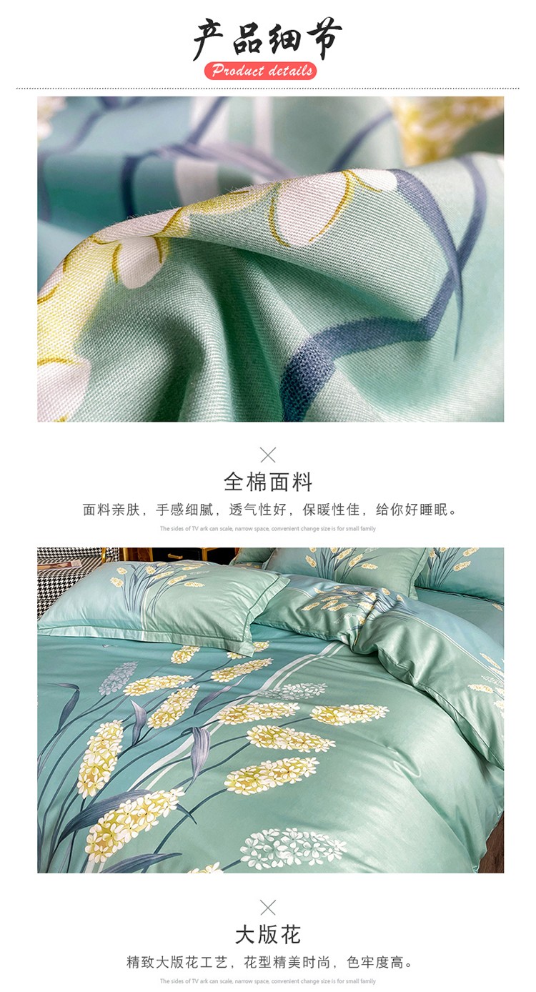 商品名称:金爱家 2023新款大版13372全棉花卉系列四件套 如歌绿