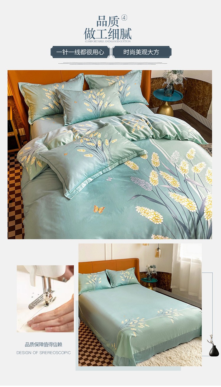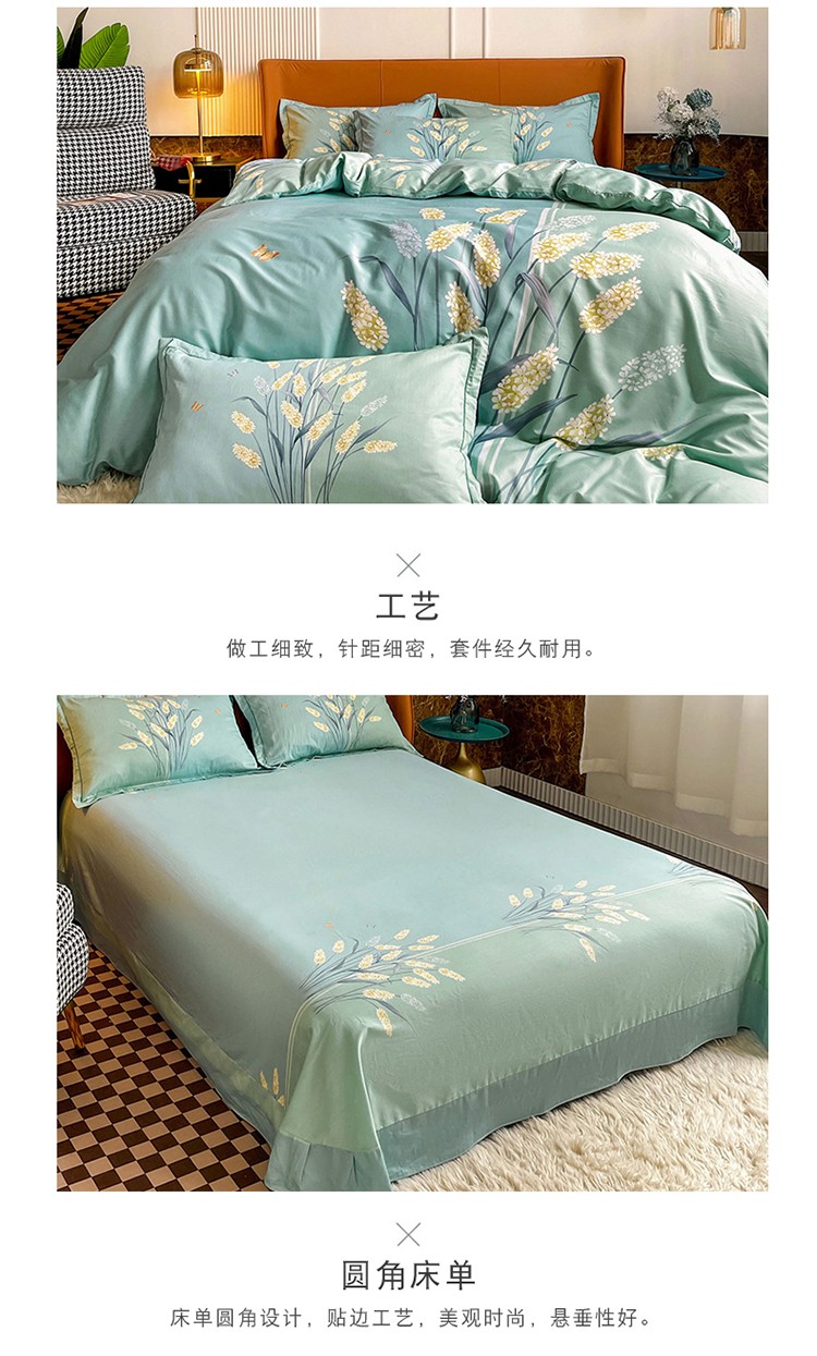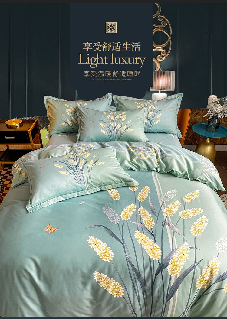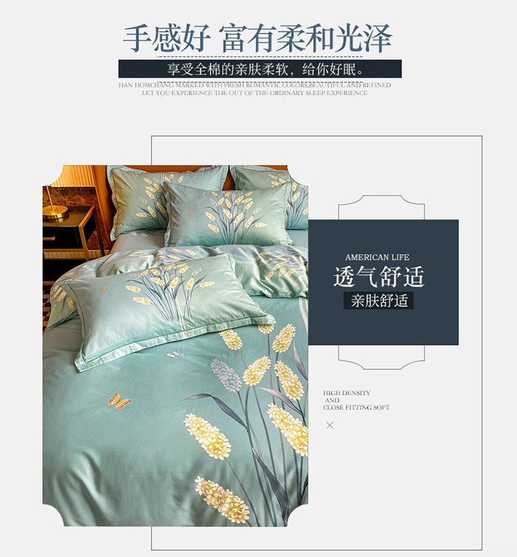 金爱家 2023新款大版13372全棉花卉系列四件套 如歌绿