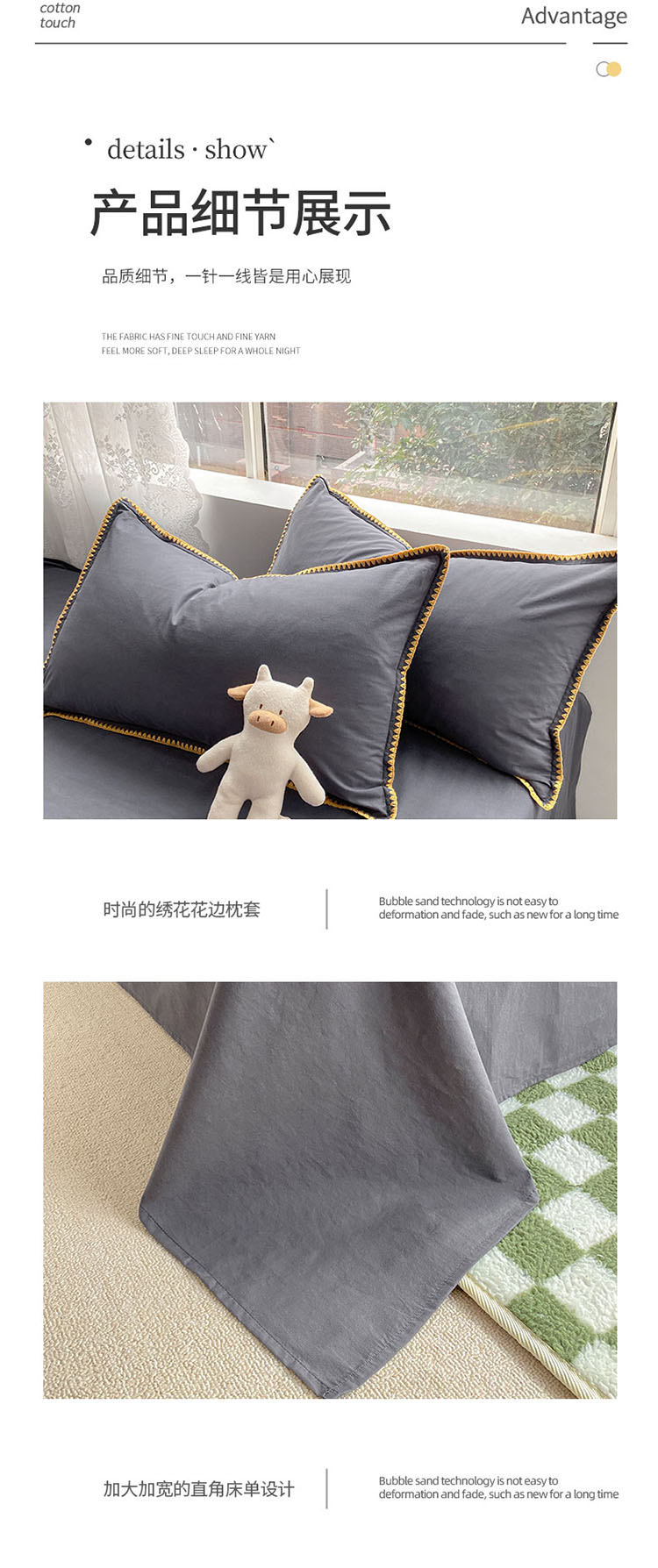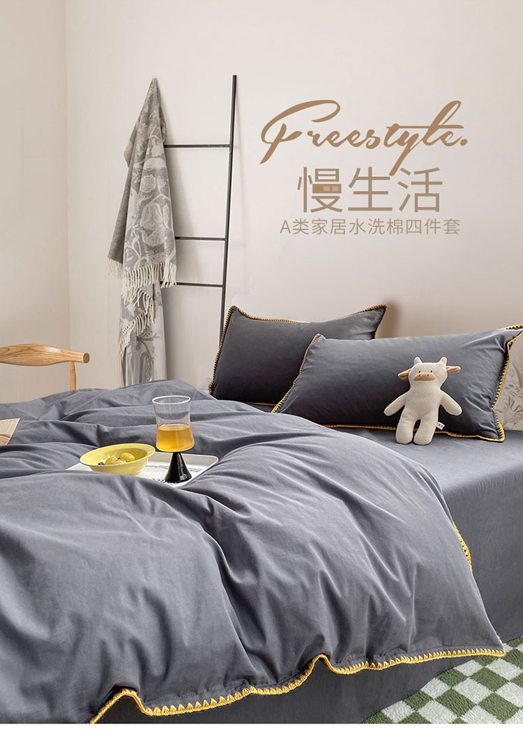 当前位置: 91家纺网 > 商品网购 > 床品套件 > 四件套 > 水洗棉四件套 > 泽西家纺 2022新款A类全棉水洗棉四件套 贝壳—深灰