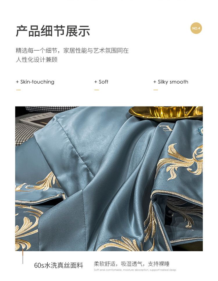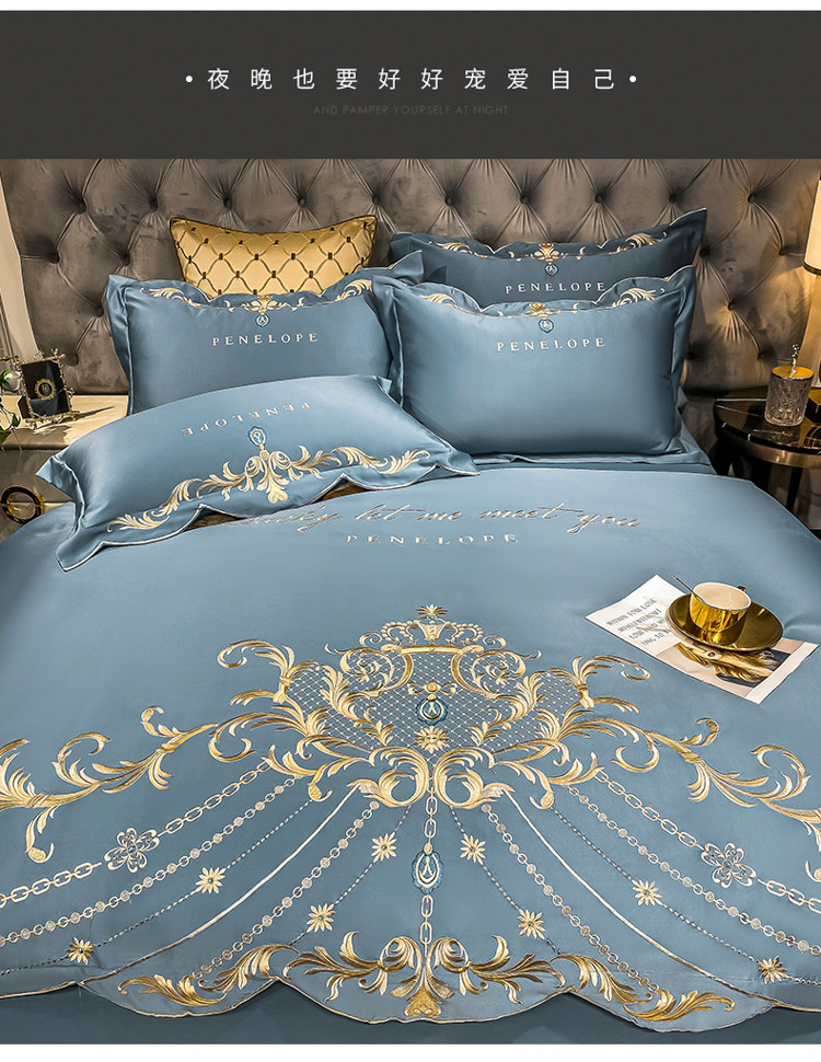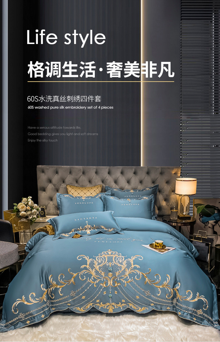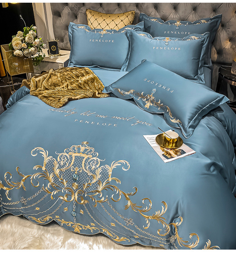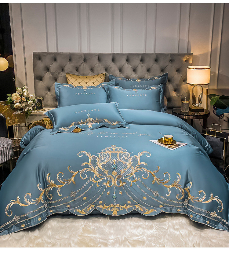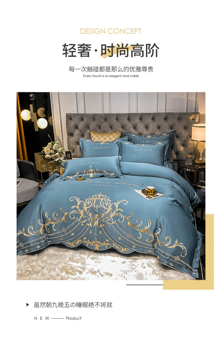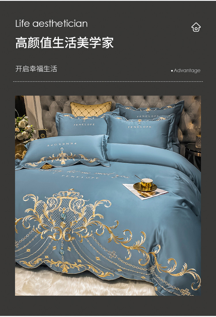 (总)欧乐蒂 2025新款欧式水洗贡缎全棉刺绣四件套-欧雅终版,宾利蓝,玉色,白色,粉色,豆沙,酒红,香槟,高级灰