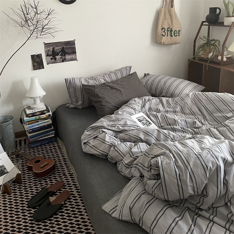 当前位置: 91家纺网 > 商品网购 > 床品套件 > 四件套 > 全棉普通四件套 > 恋恋三季 全棉色织水洗棉VINTAGE中古风条纹-深灰+浅灰