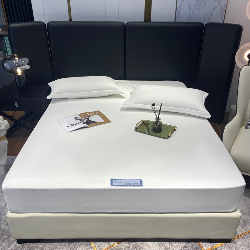 豪选 新款高端贡缎锦棉床笠单层两面用防尘冰丝床罩床垫套 白