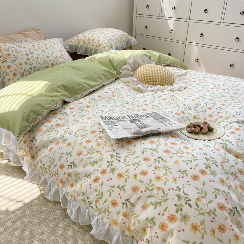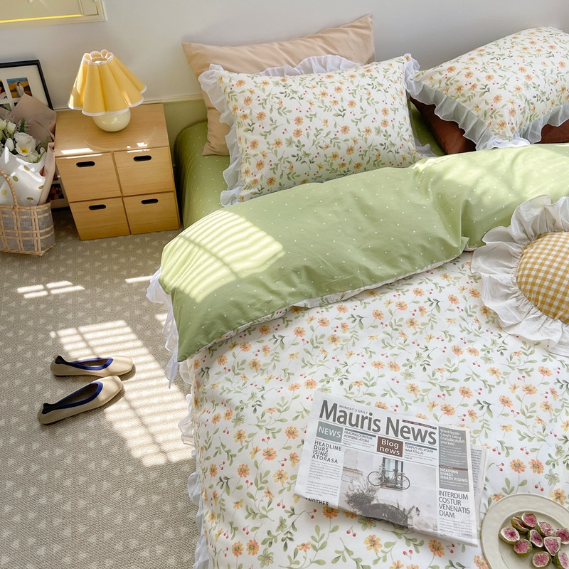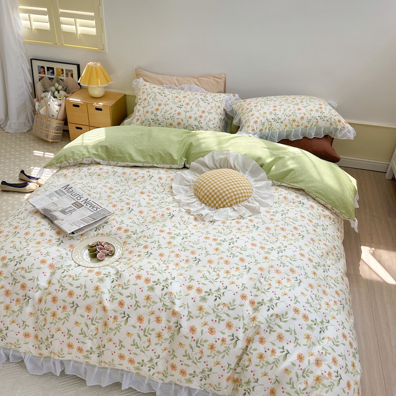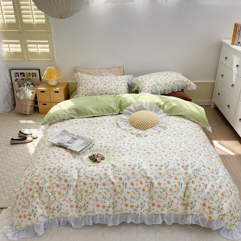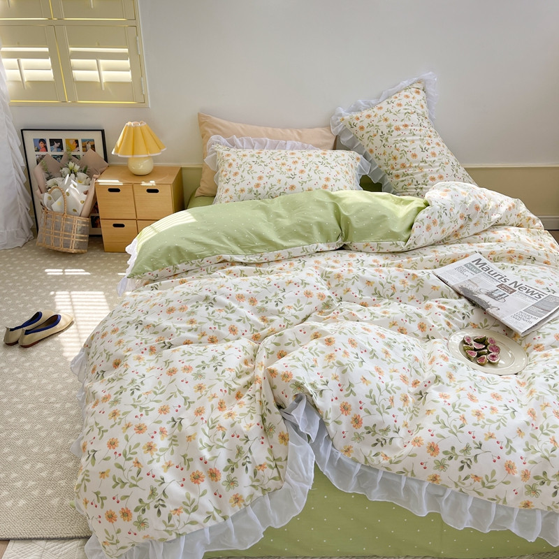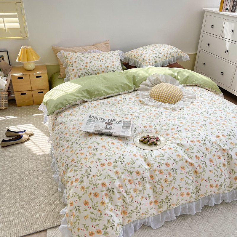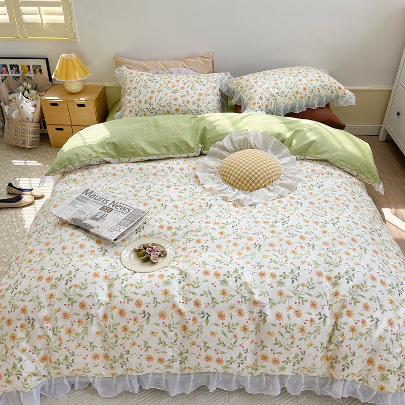 (床笠不退换)全棉13372新款雪纺纱花边四件套 清芬