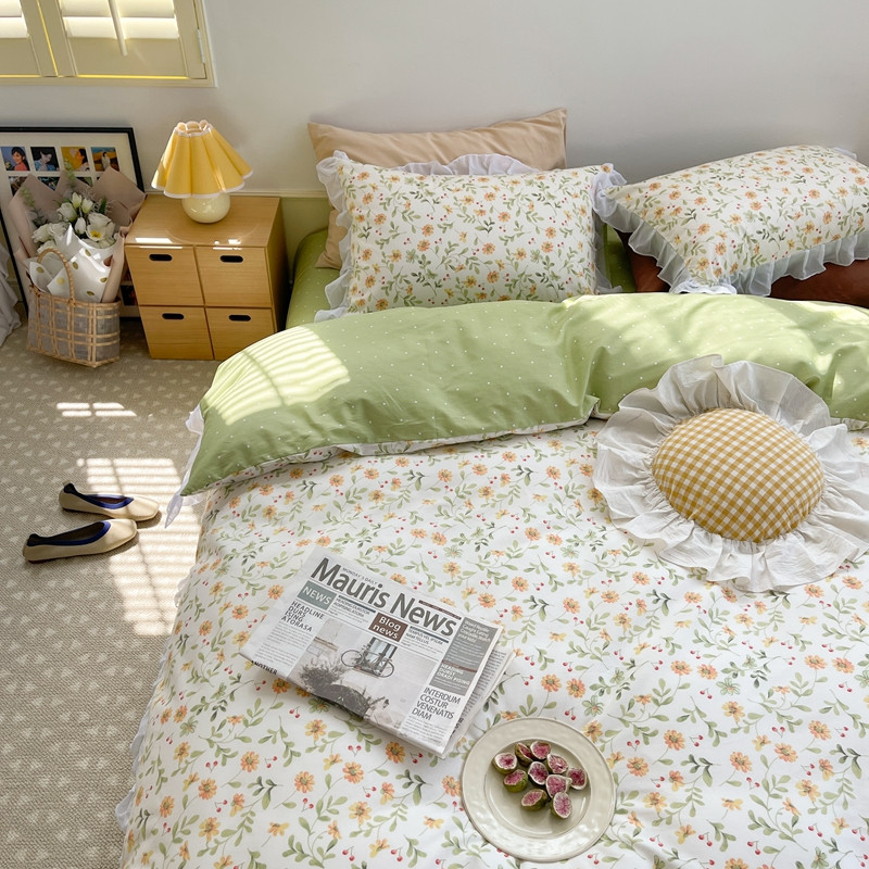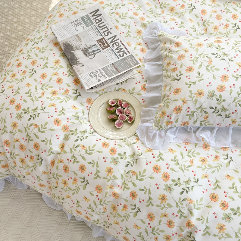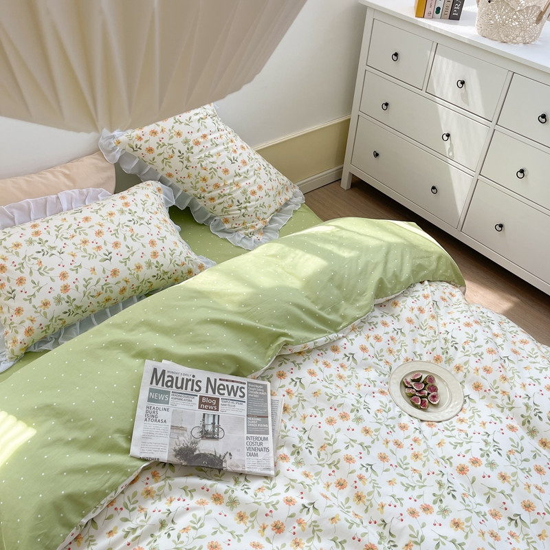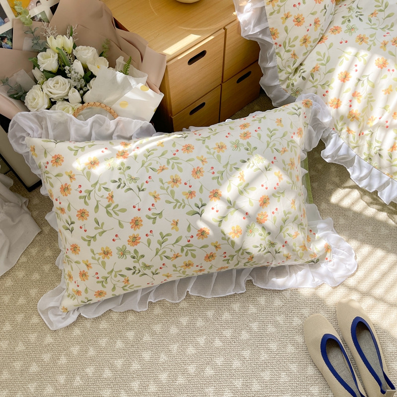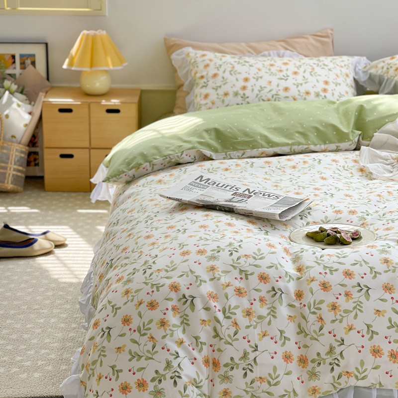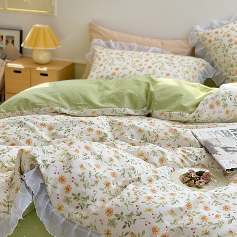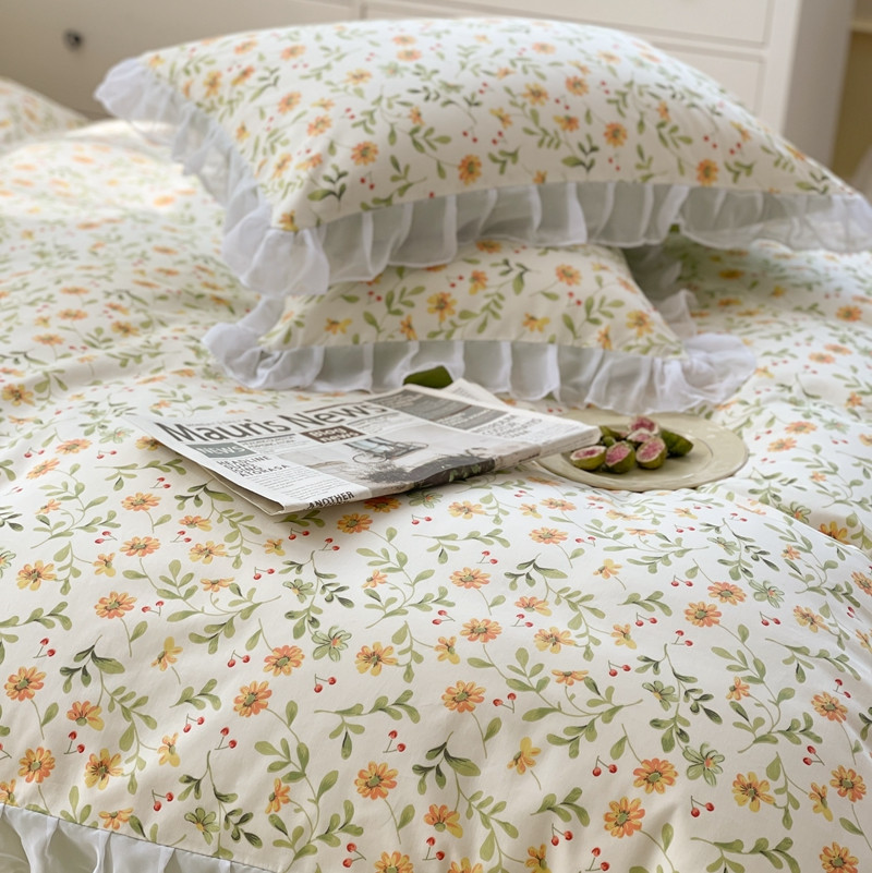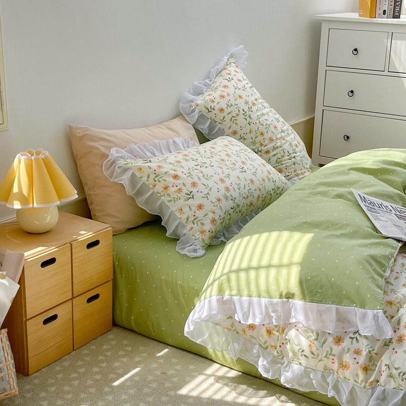 (床笠不退换)全棉13372新款雪纺纱花边四件套 清芬