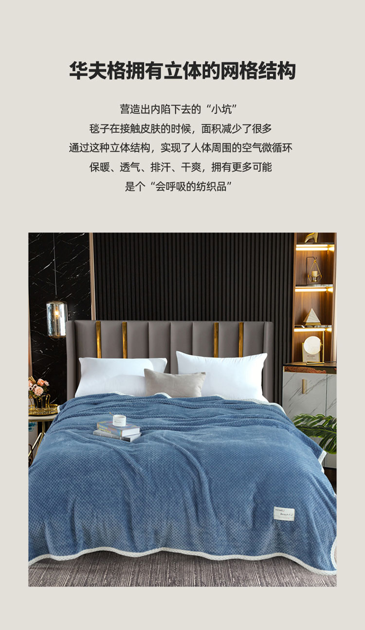 好艺佳2025爆款300克加厚秋冬华夫格毛毯绒毯床单盖毯华夫格-豆沙