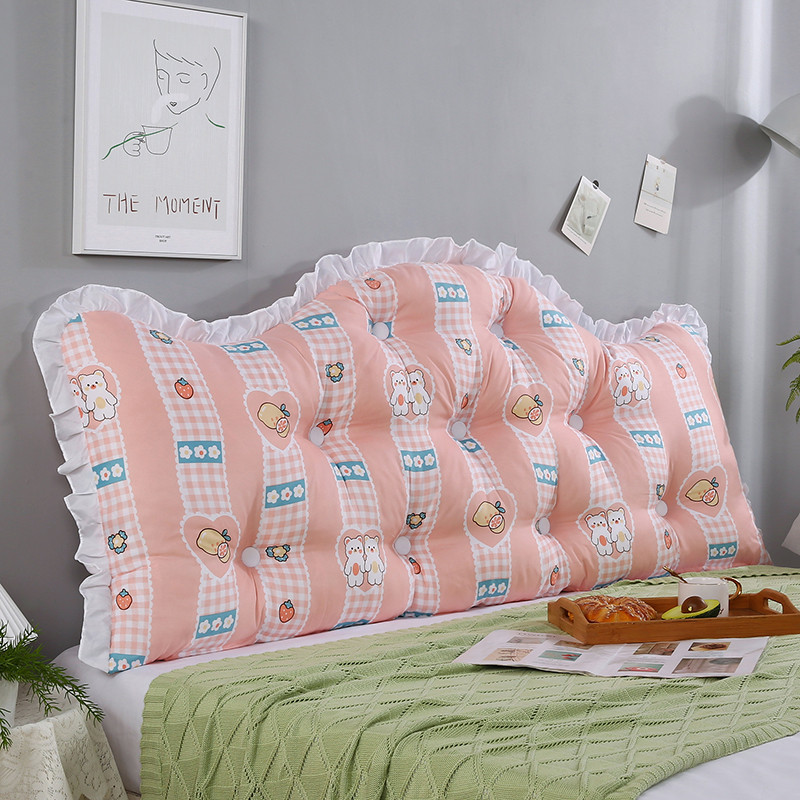 美达人 2022新款韩版水洗棉荷叶边床靠背 千嘉喜粉