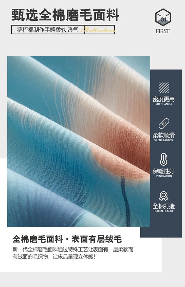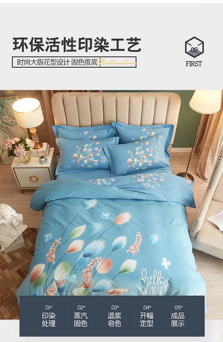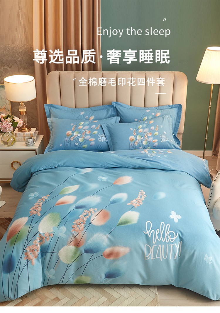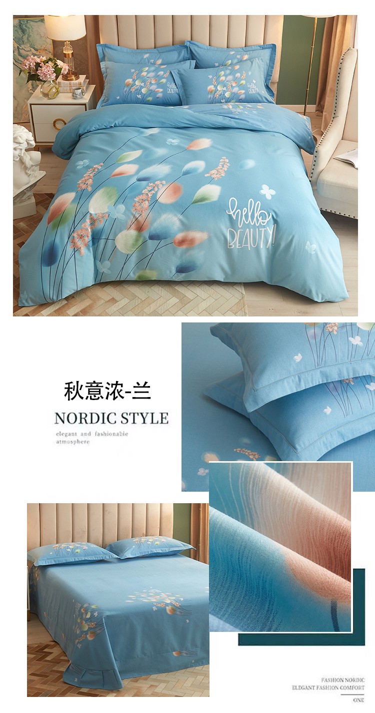 商品名称:金纱玉纺 2022新款纯棉大版磨毛印花四件套 秋意浓-兰