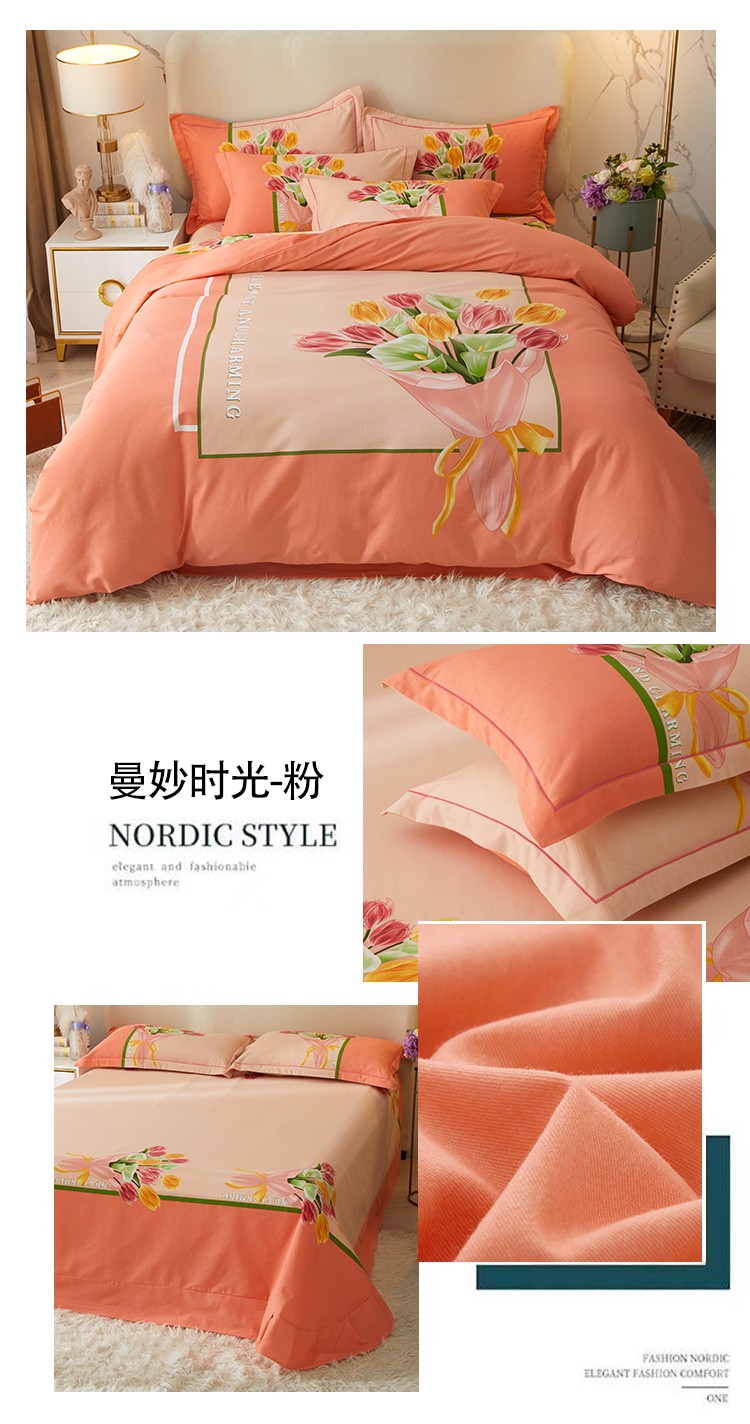 商品名称:金纱玉纺2022新款全棉生态大版磨毛四件套 曼妙时光-粉