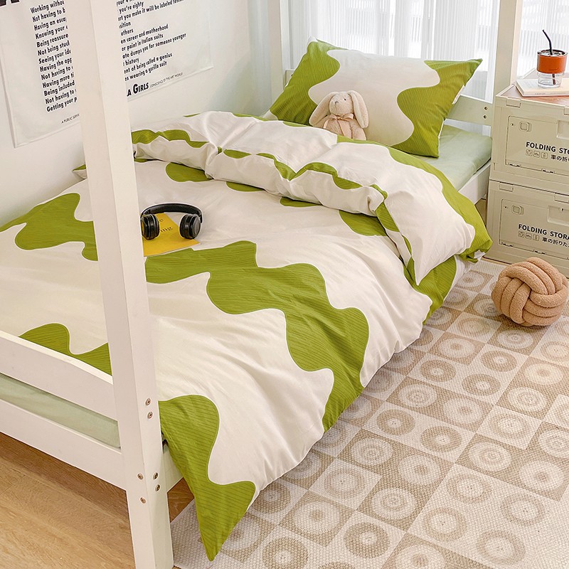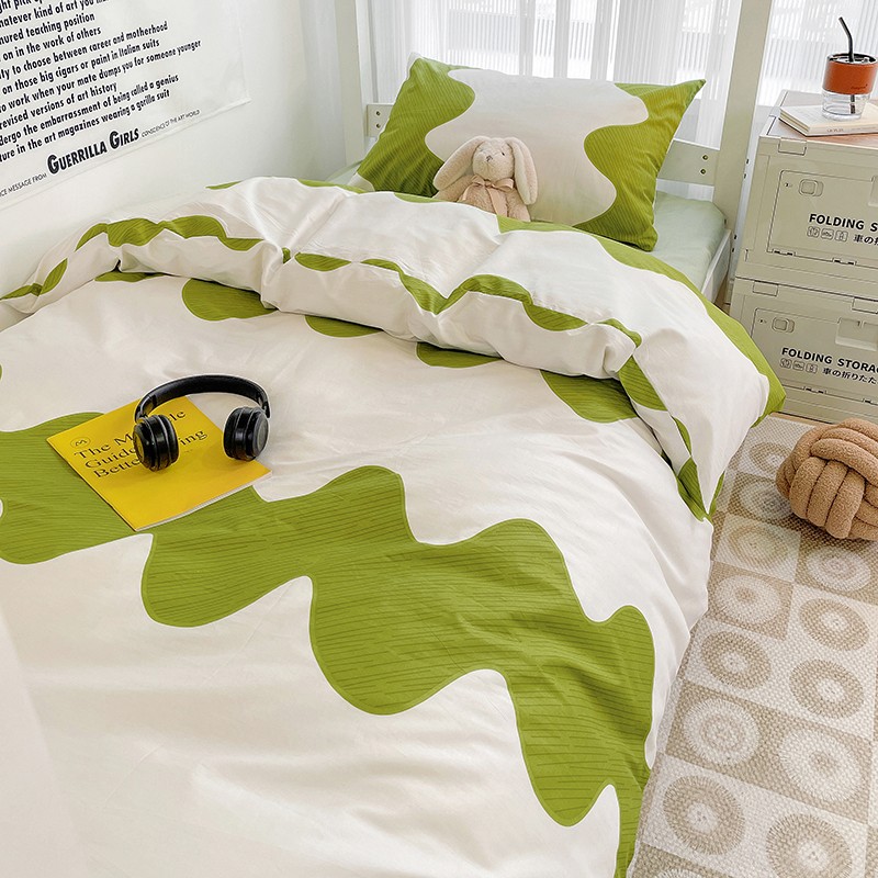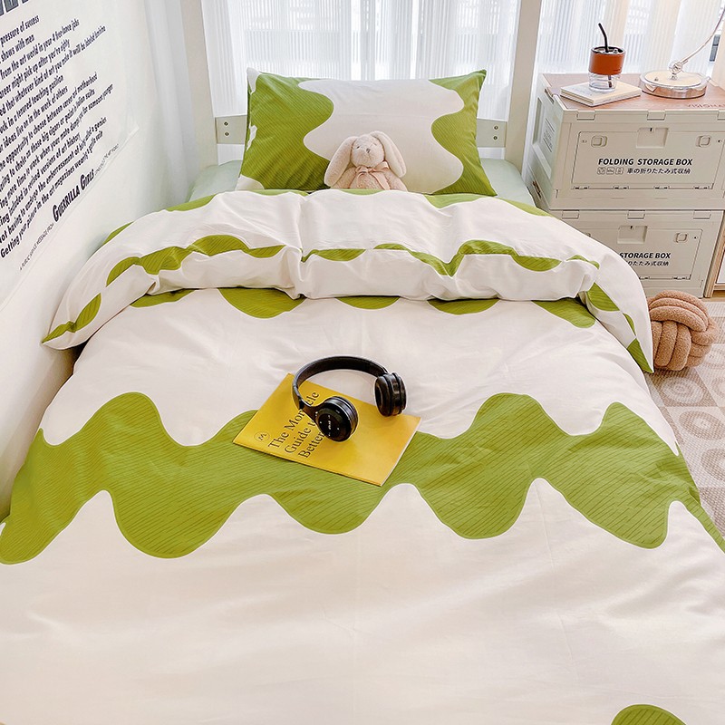 商品名称:昔可 2022新款开学季全棉卡通印花学生三件套 绿波纹
