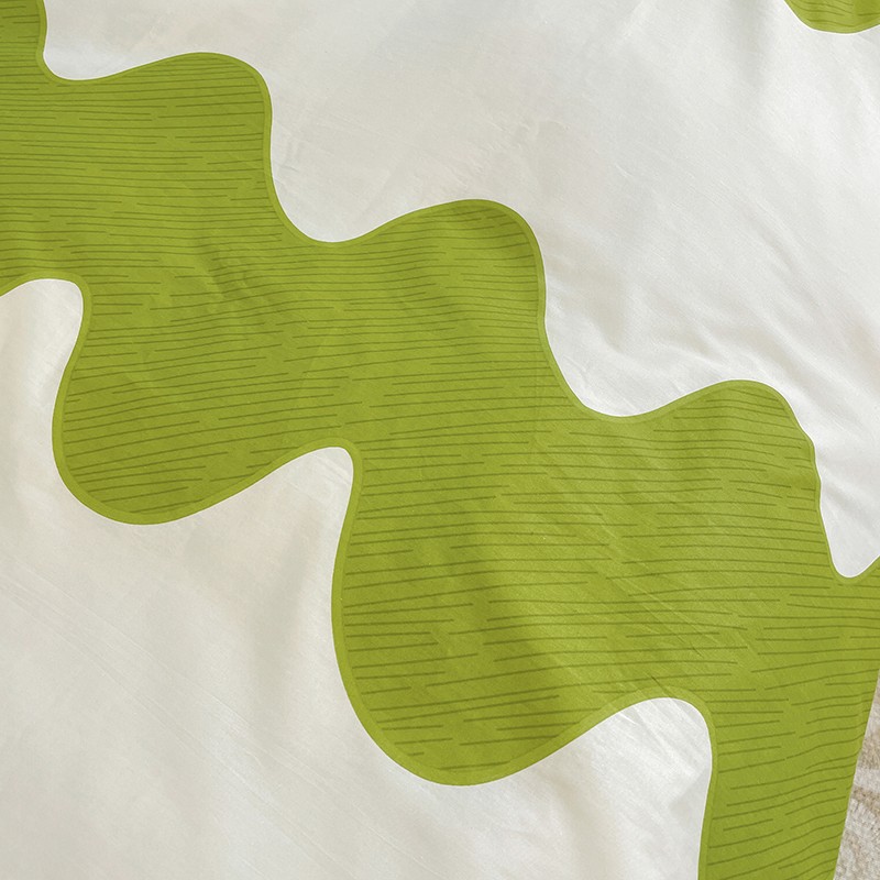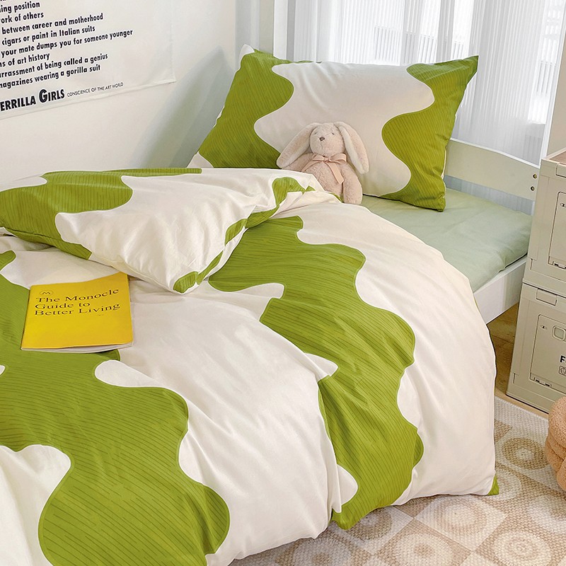 昔可 2022新款开学季全棉卡通印花学生三件套 绿波纹