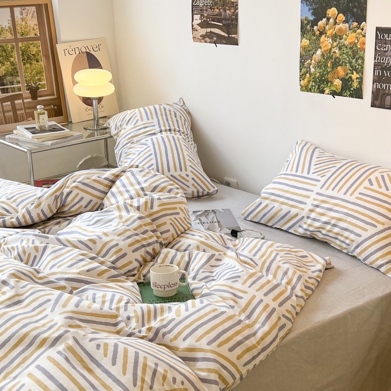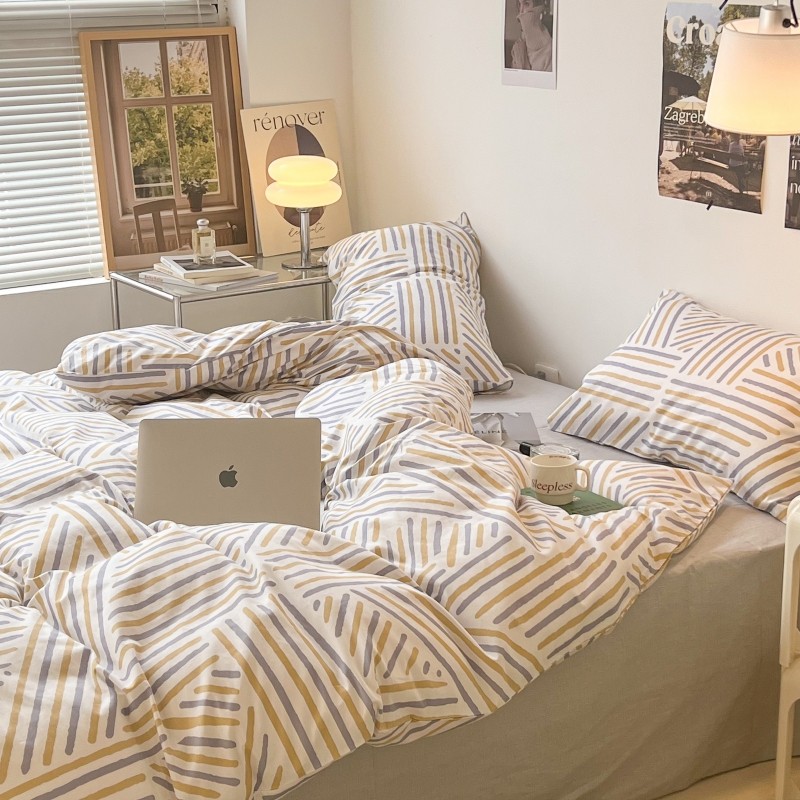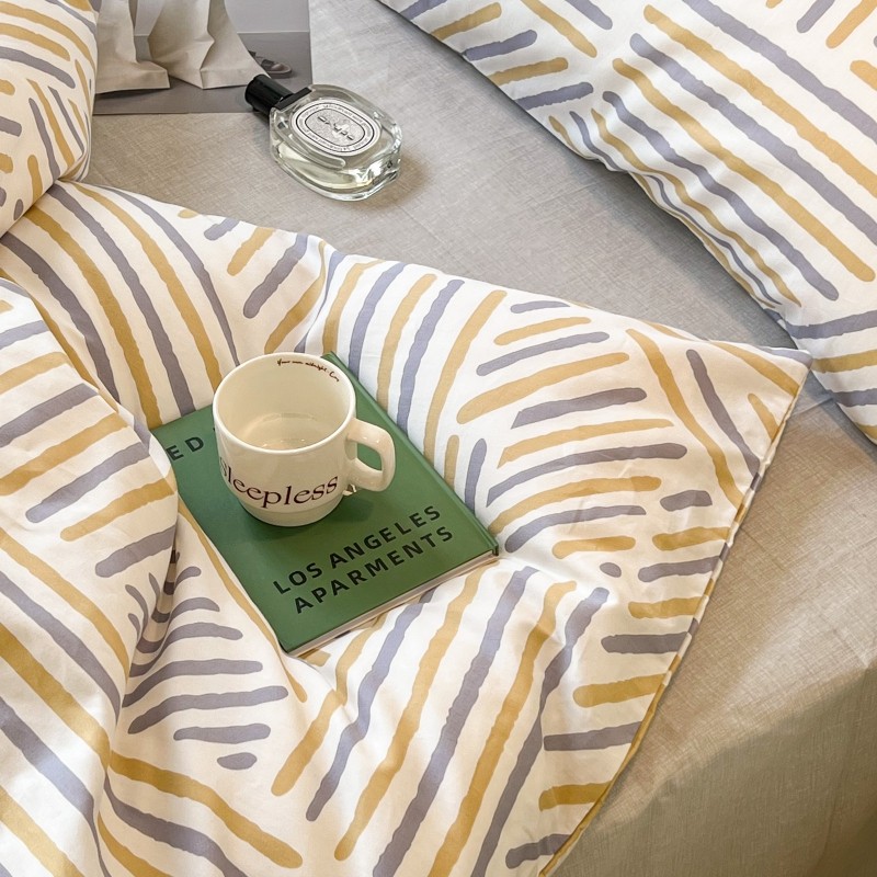 昔可家纺 2022新款简约几何北欧风全棉四件套 几何线条