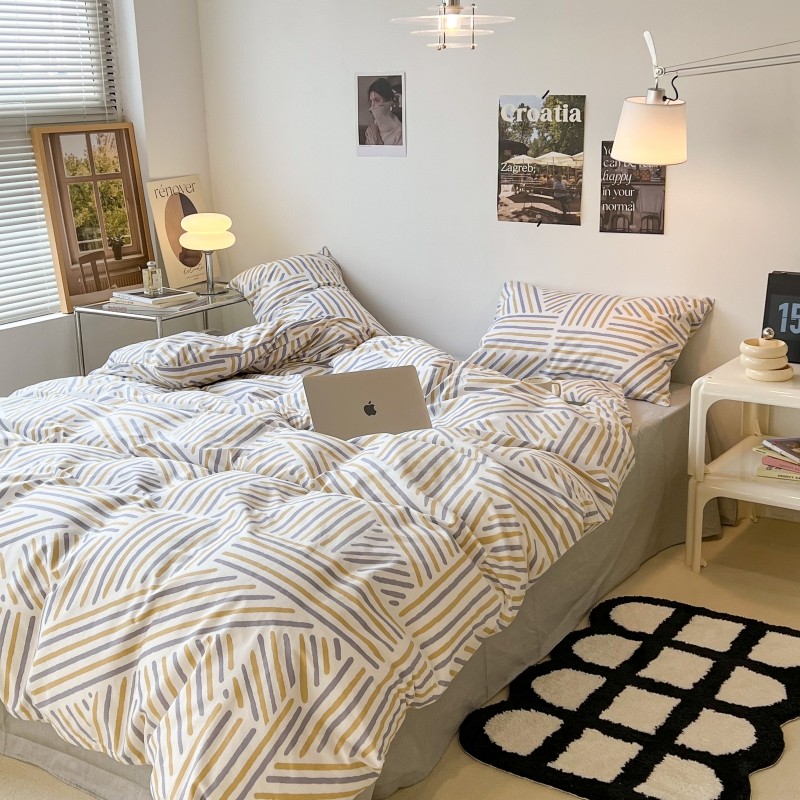 (总)昔可家纺 2023新款全棉学生季北欧风四件套,北欧几何,荷兰印象,机理格,几何爱心,泼墨爱心黑,轻奢彩条,塞纳灰,塞纳蓝