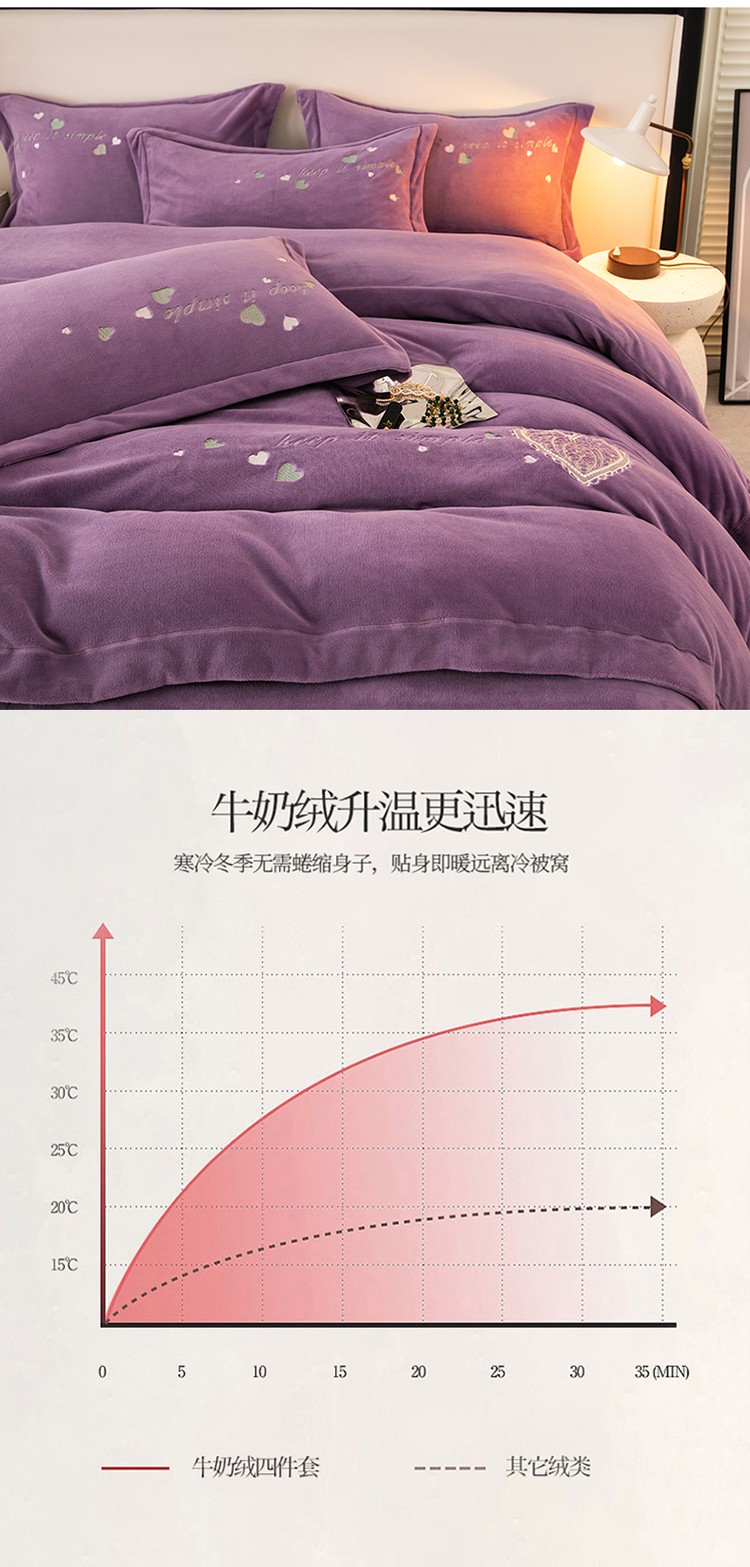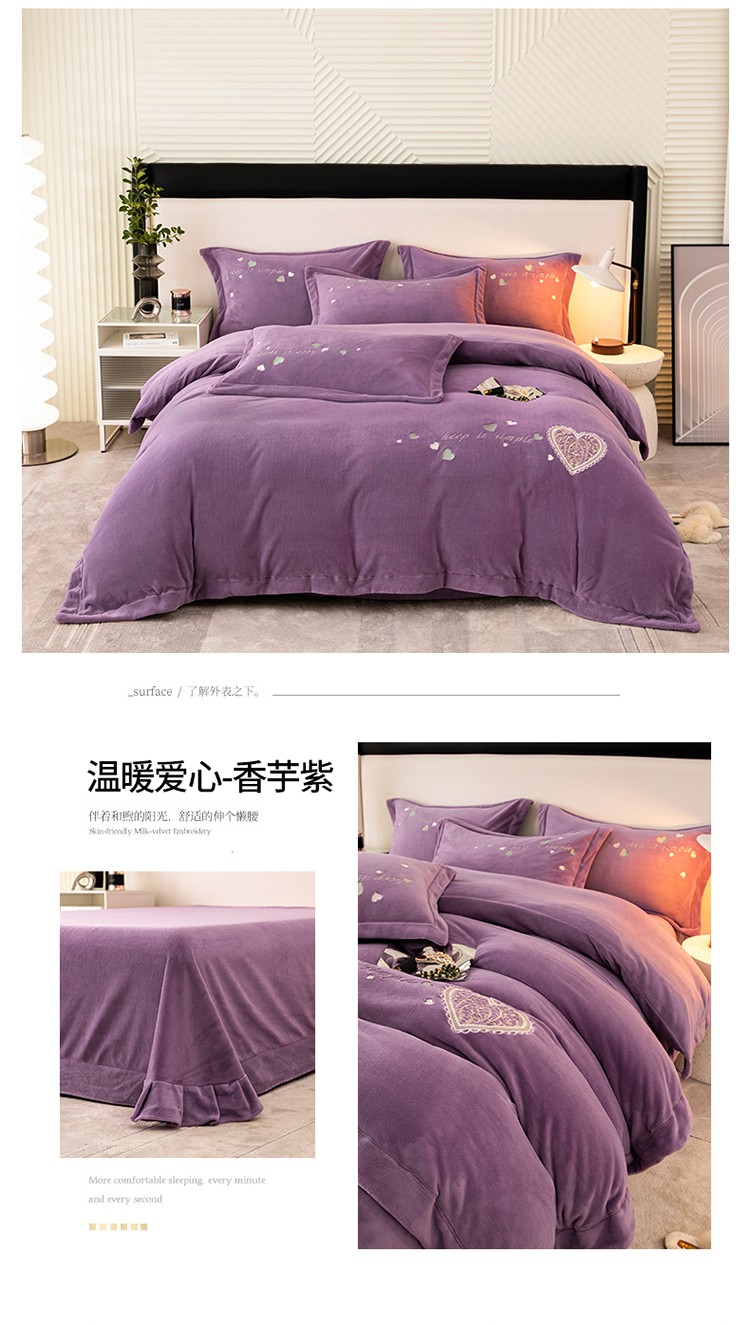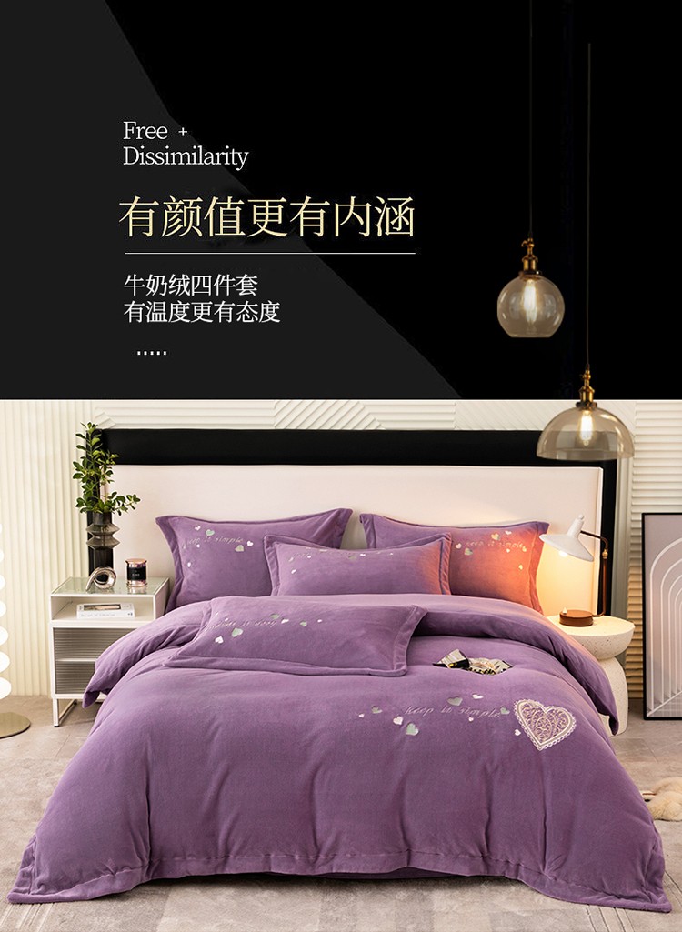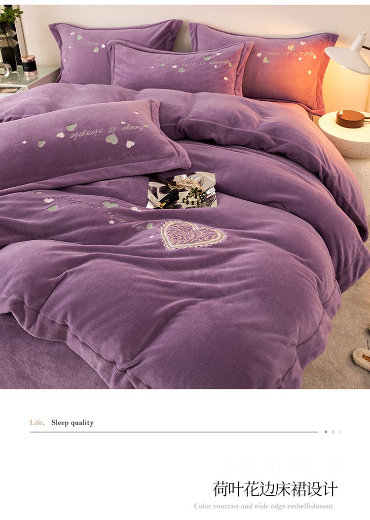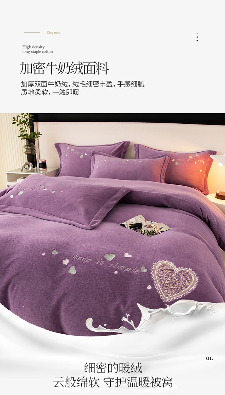 绒博士新款牛奶绒刺绣压线款四件套-温暖爱心 温暖爱心-香芋紫