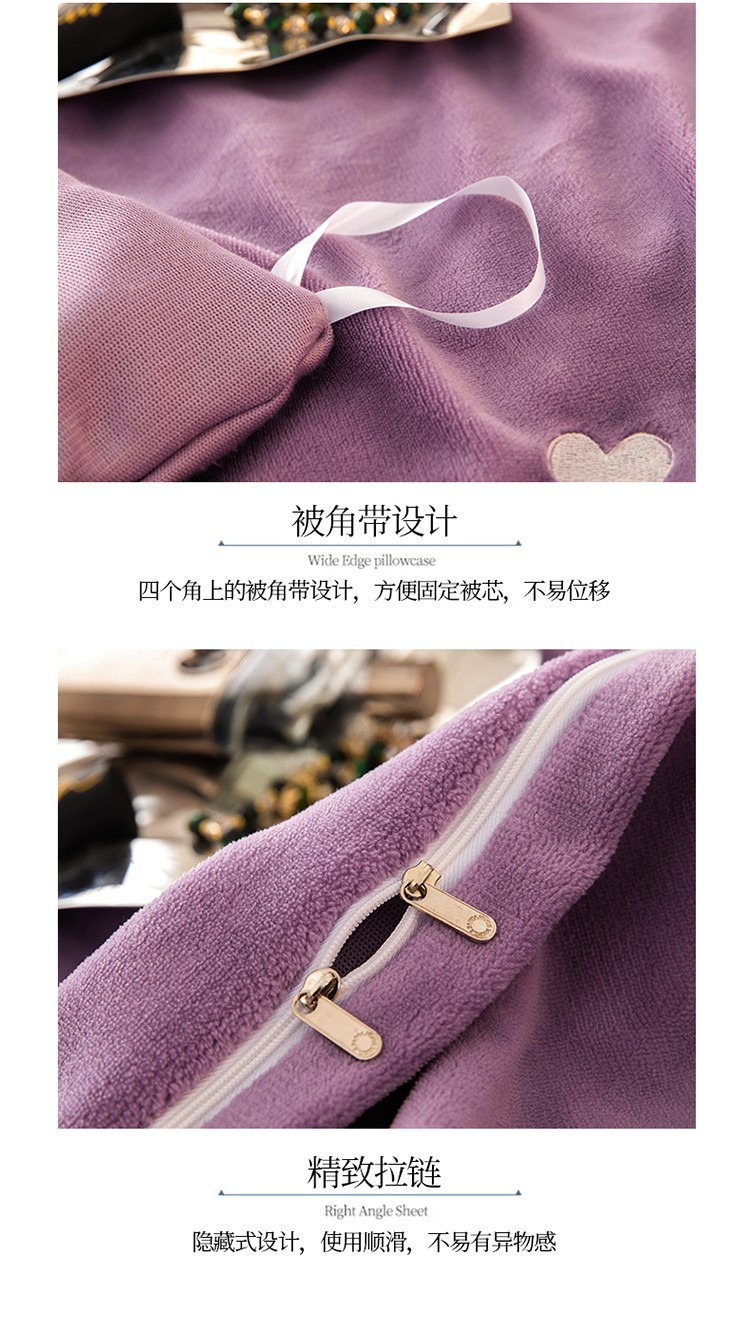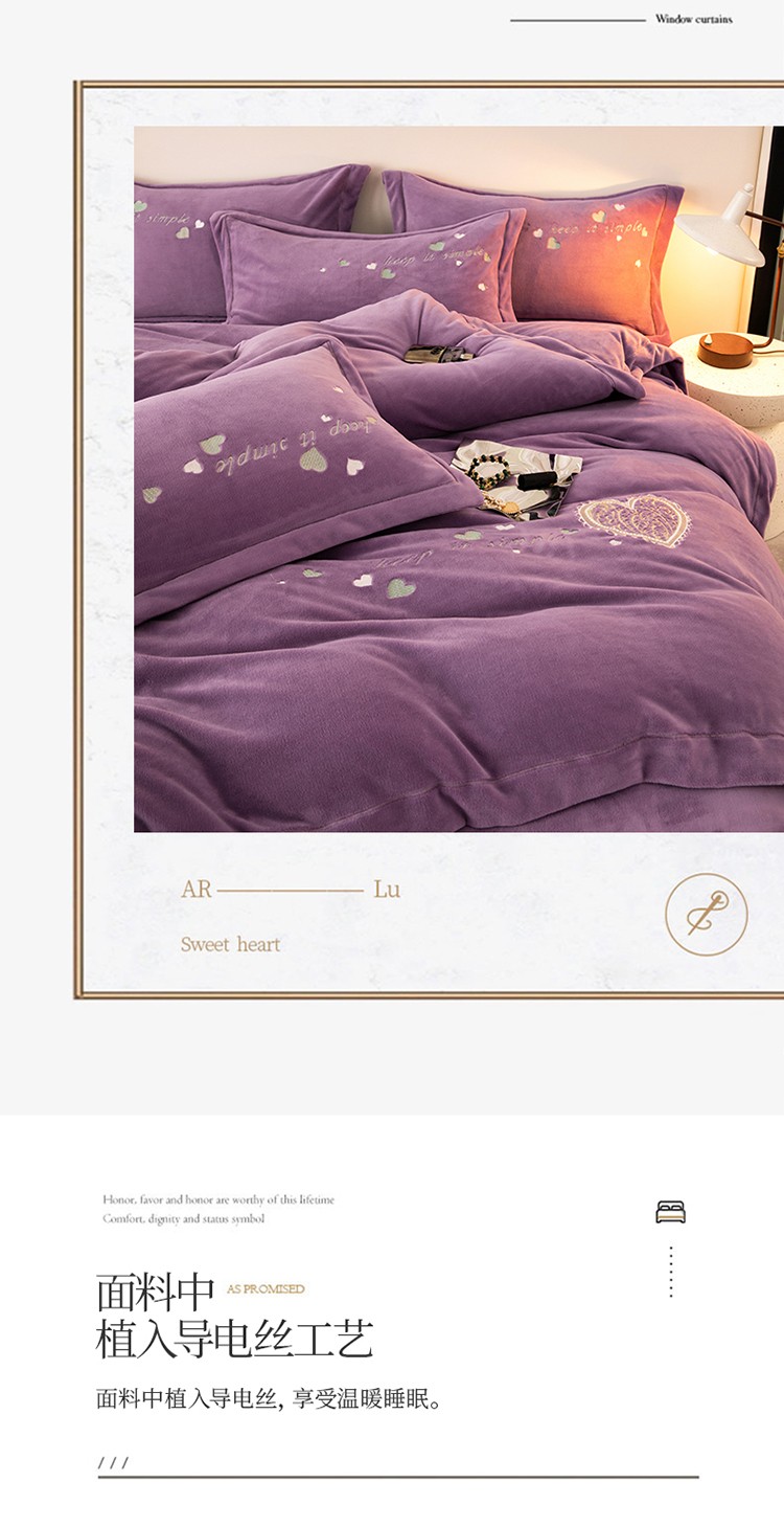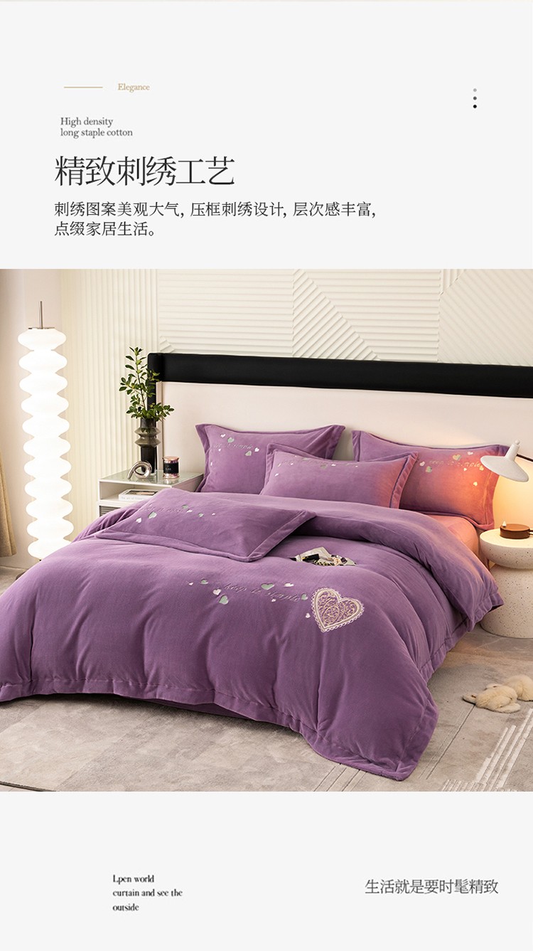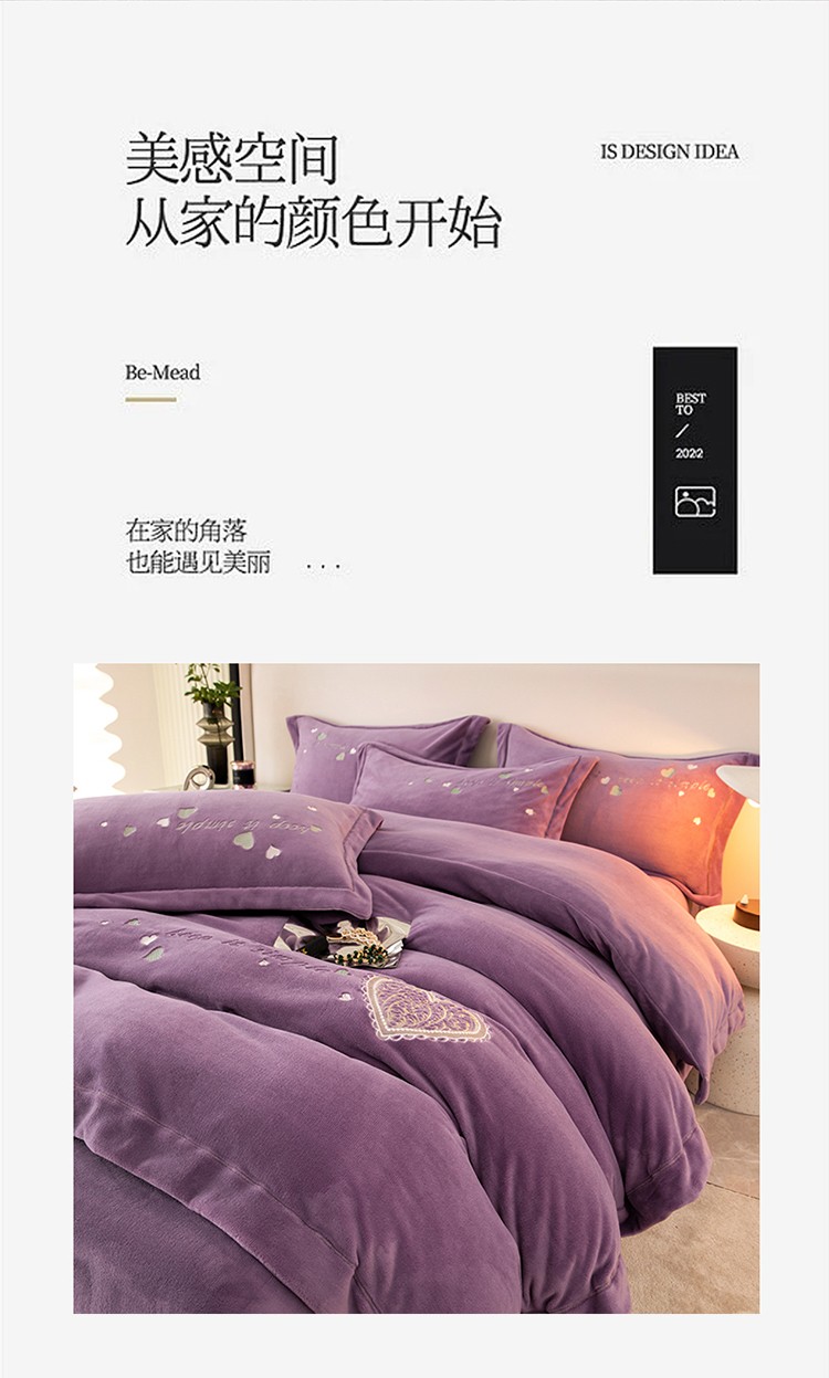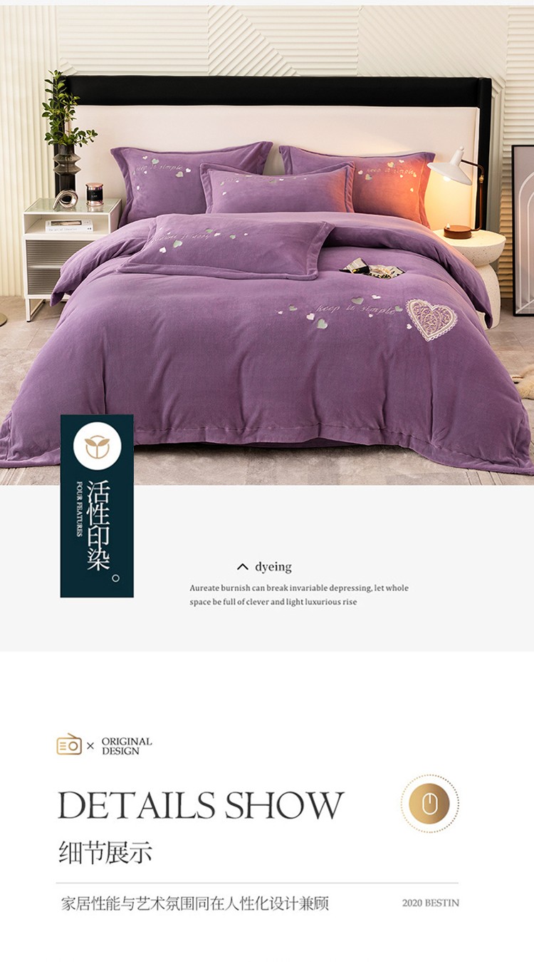 绒博士新款牛奶绒刺绣压线款四件套-温暖爱心 温暖爱心-香芋紫