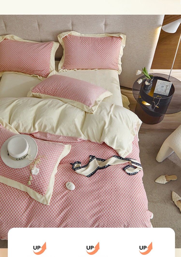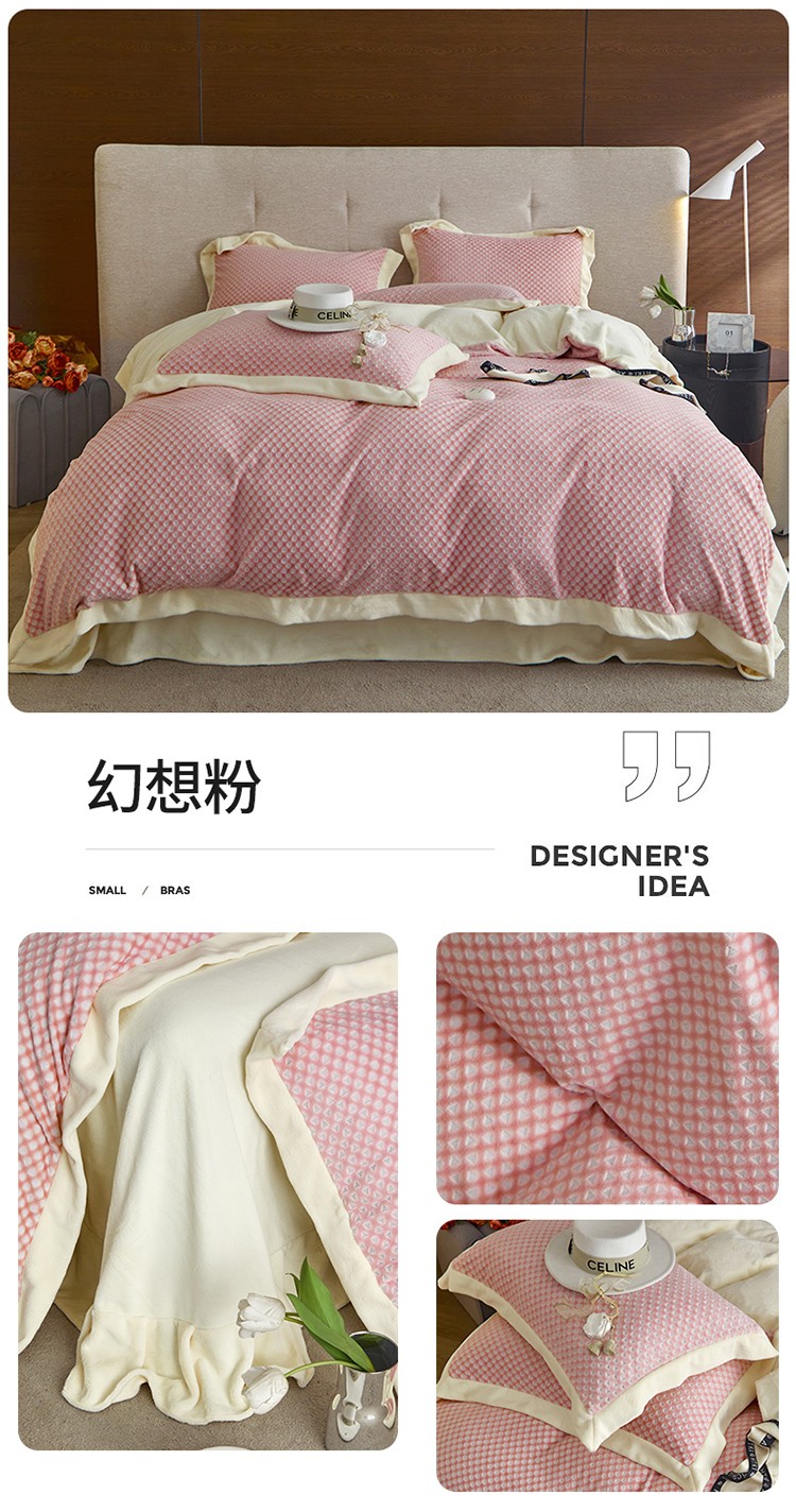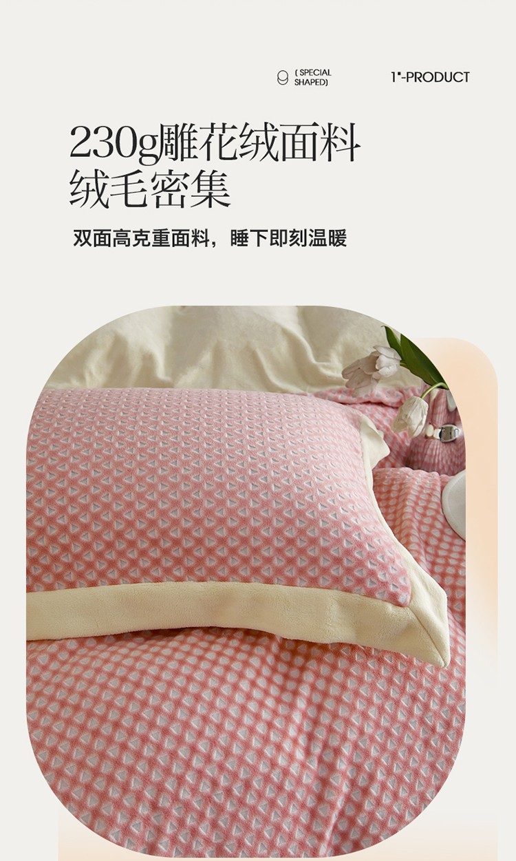 名品优仓 2022新款加厚雕花绒系列四件套-都市生活 幻想粉