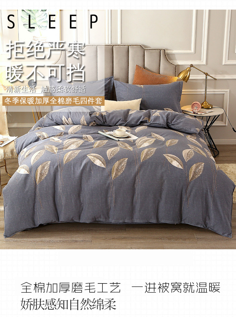 当前位置: 91家纺网 > 商品网购 > 床品套件 > 四件套 > 磨毛活性四件套 > 晶缦2022新款全棉活性磨毛多规格床单床笠款四件套系列 自由风-灰
