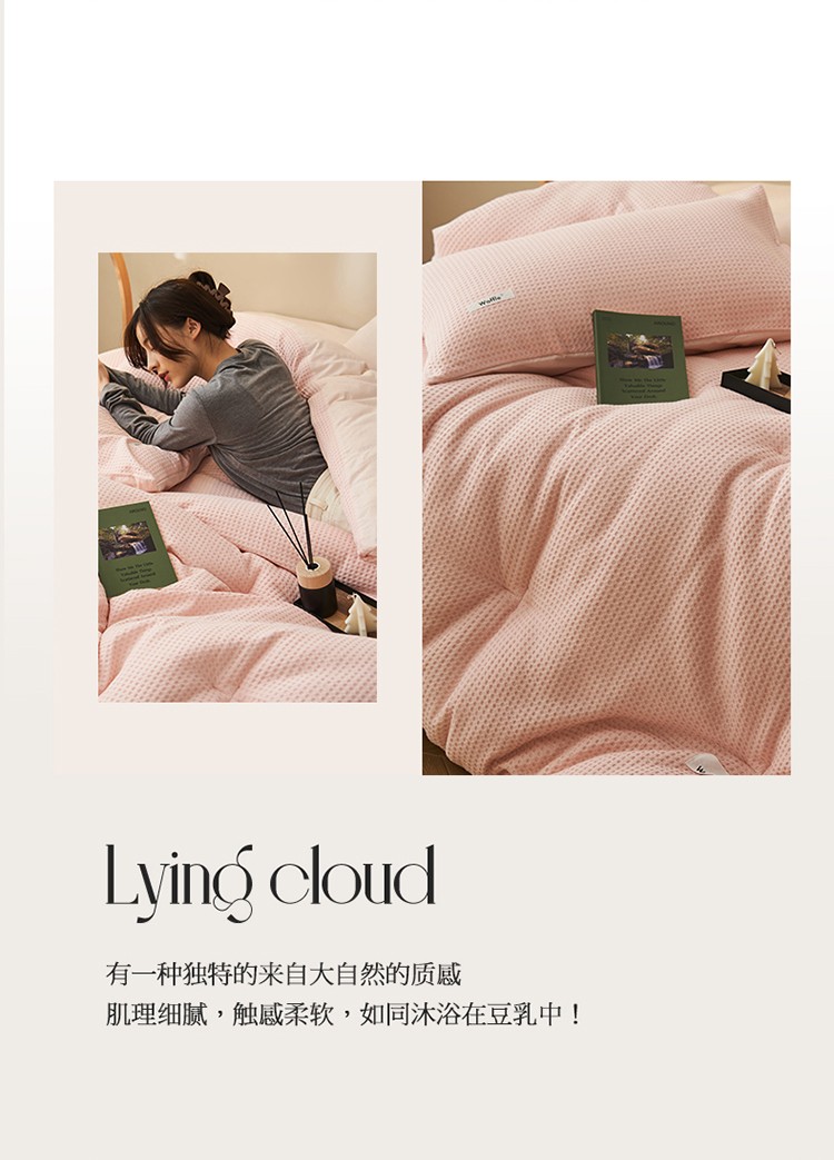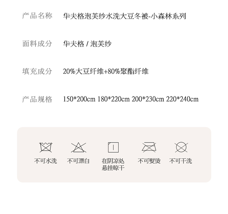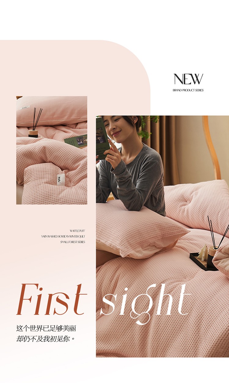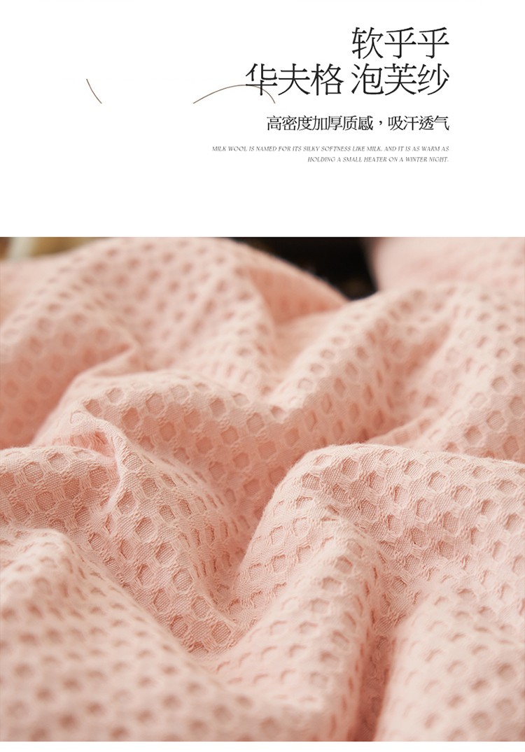 商品名称:新款华夫格泡芙纱水洗大豆冬被-小森林系列 小森林-奶粉色
