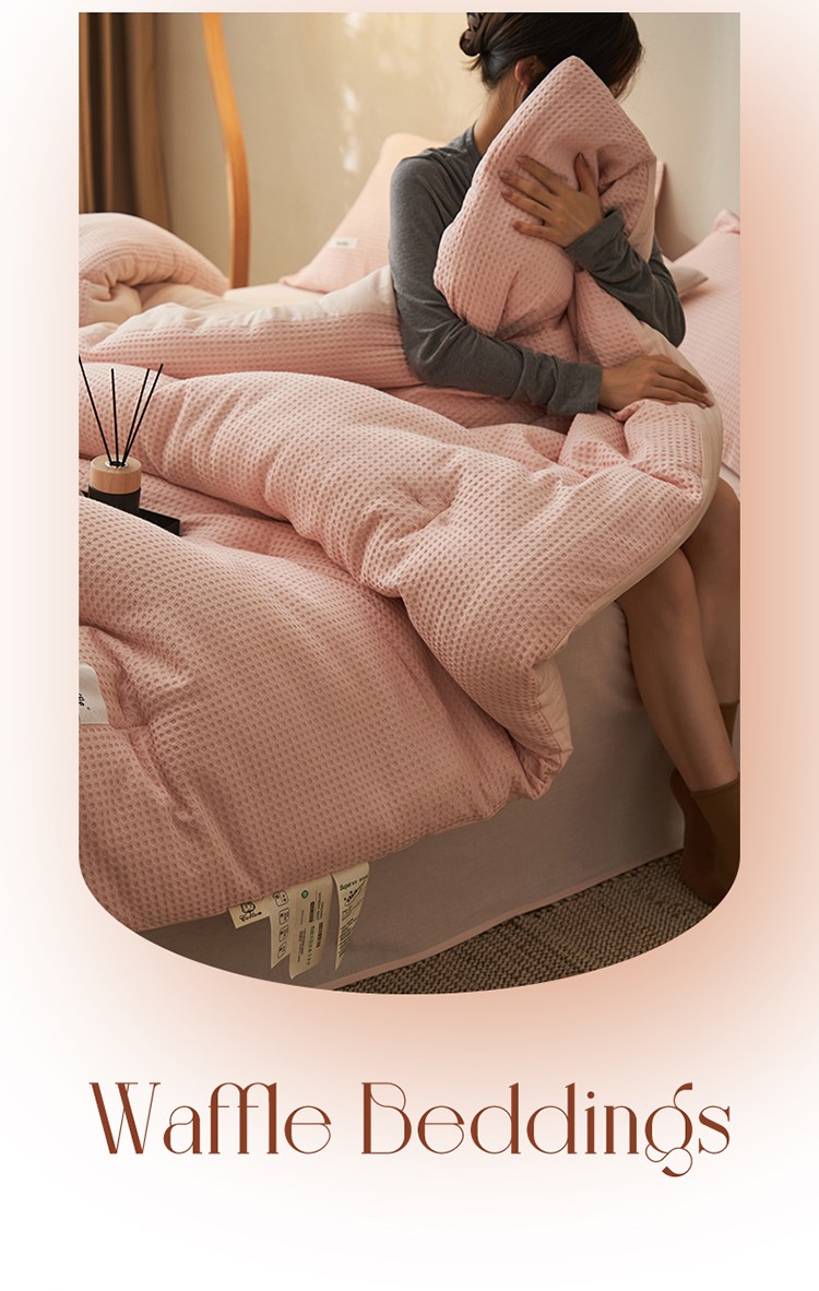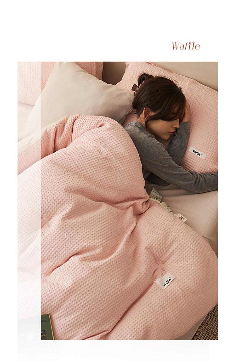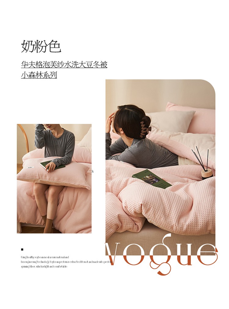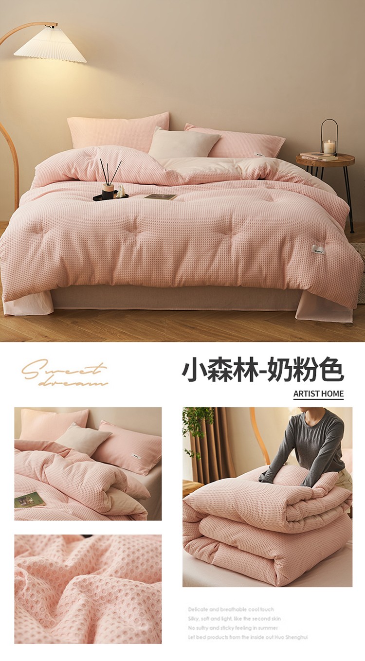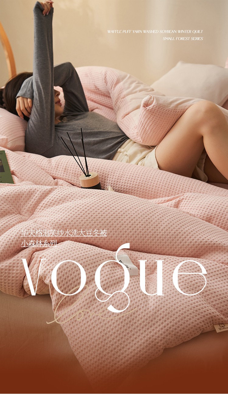 新款华夫格泡芙纱水洗大豆冬被-小森林系列 小森林-奶粉色