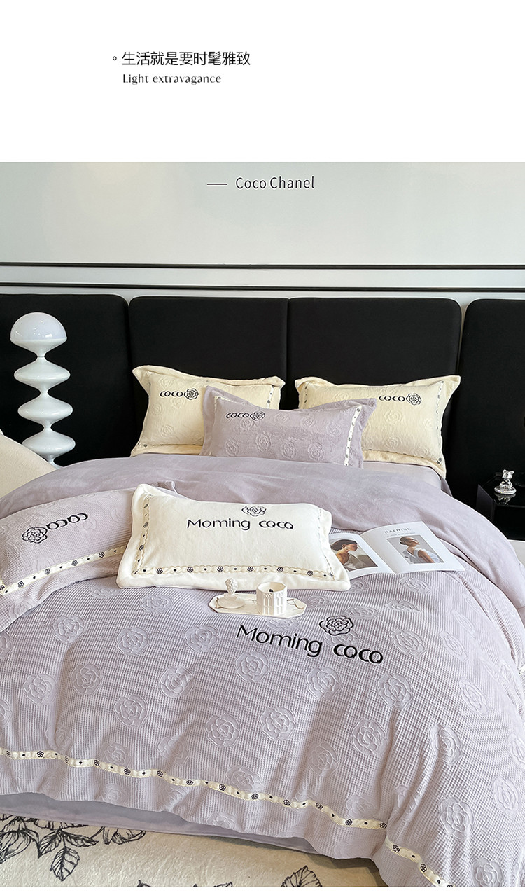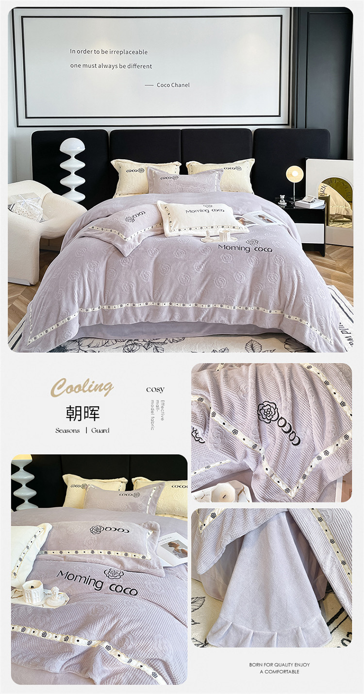 祺瑞佳 2023 花颜-A类母婴 高克重超柔牛奶绒婴儿绒雕花烂花 刺绣绣花四件套 朝晖