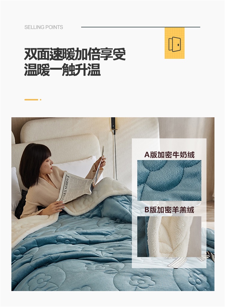 (总)铭动家纺 2024新款牛奶绒拼接款纯色保暖毯,粉色,灰,卡其,蓝灰,米白,天蓝