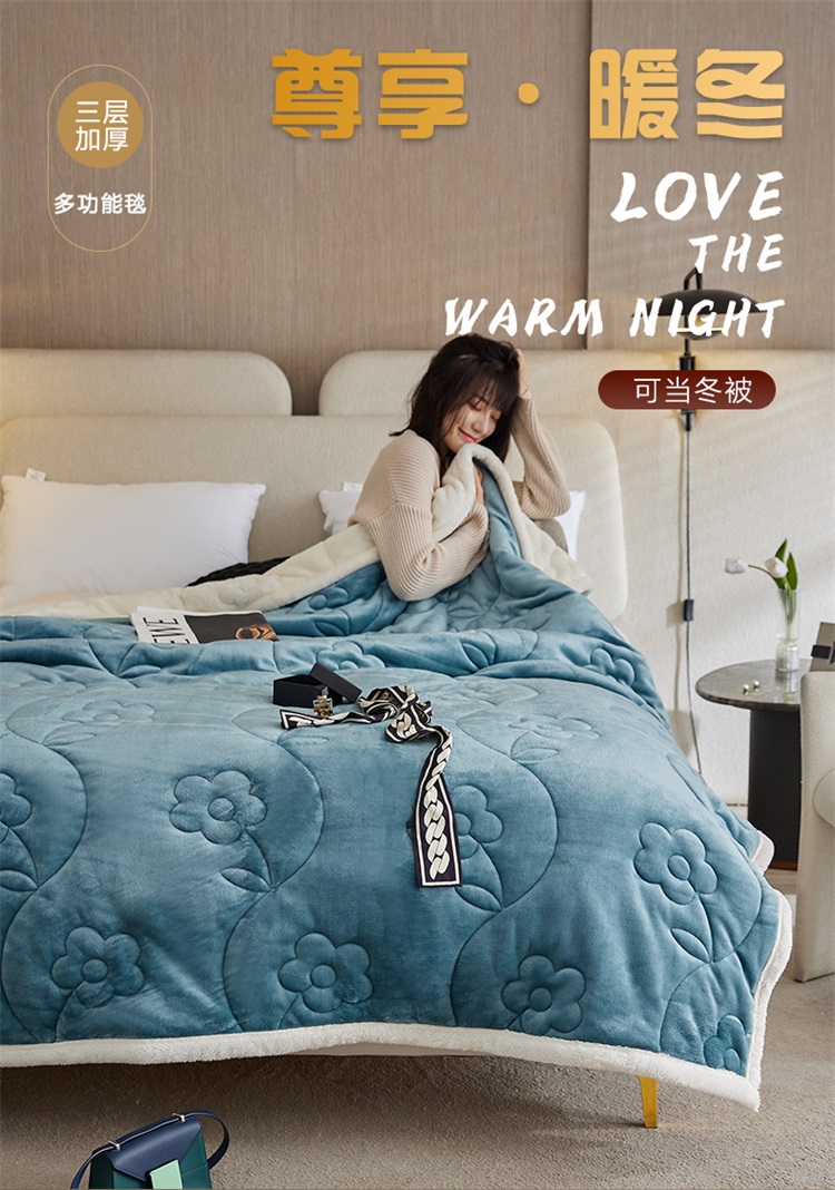 铭动 新款三层加厚加绒牛奶绒羊羔绒珊瑚绒保暖冬季毛毯-藏青