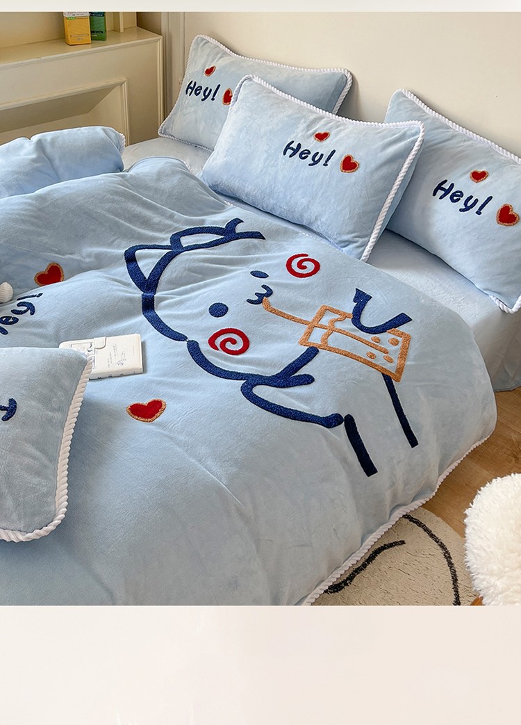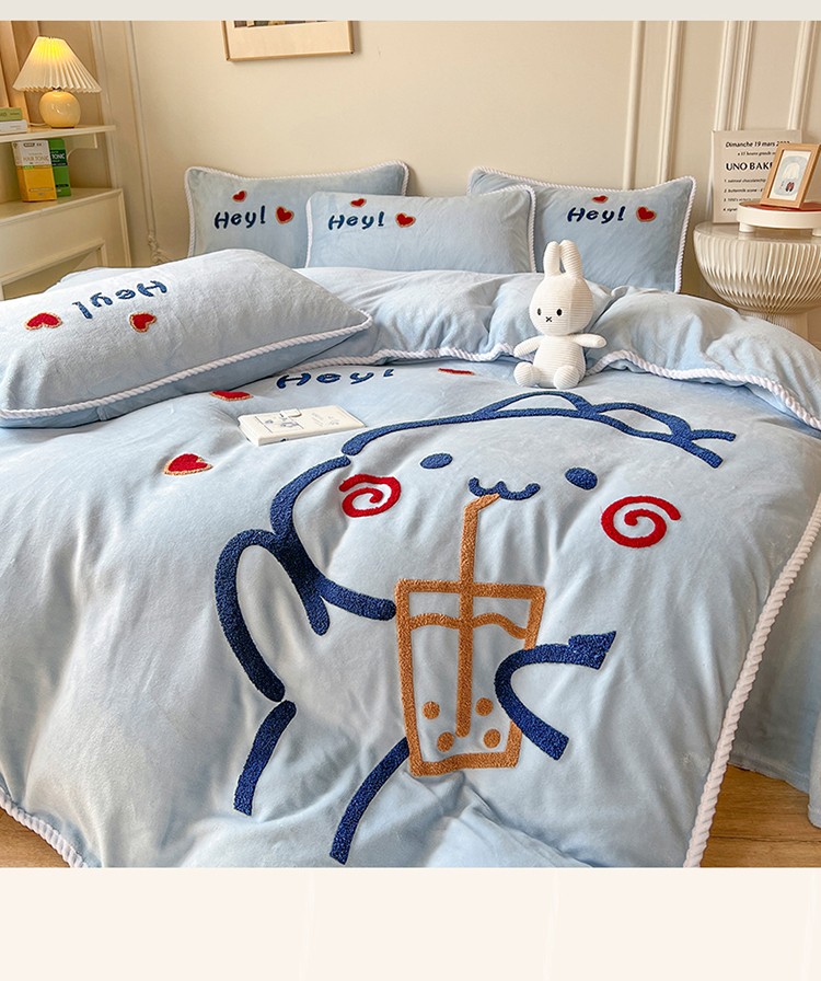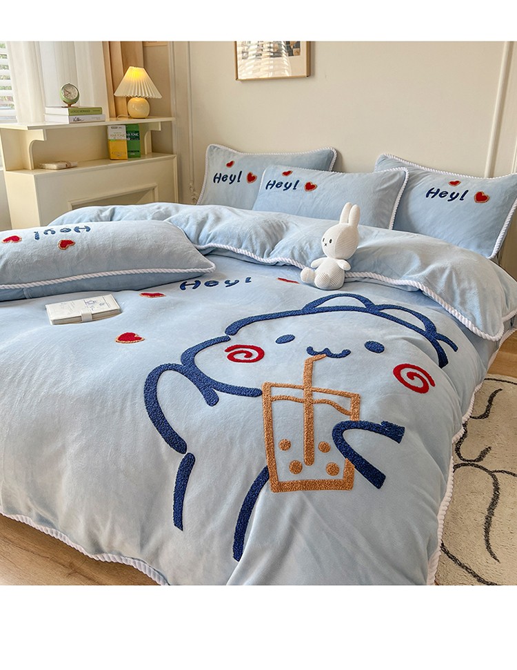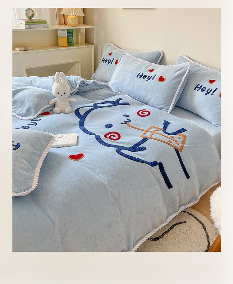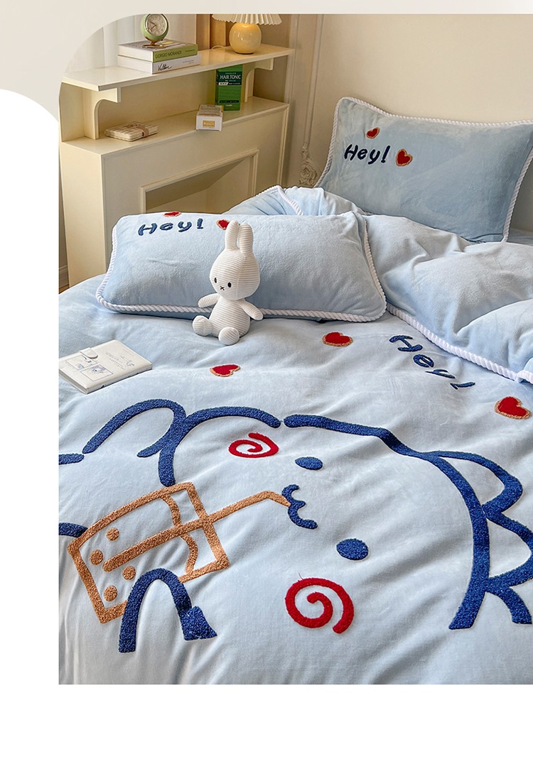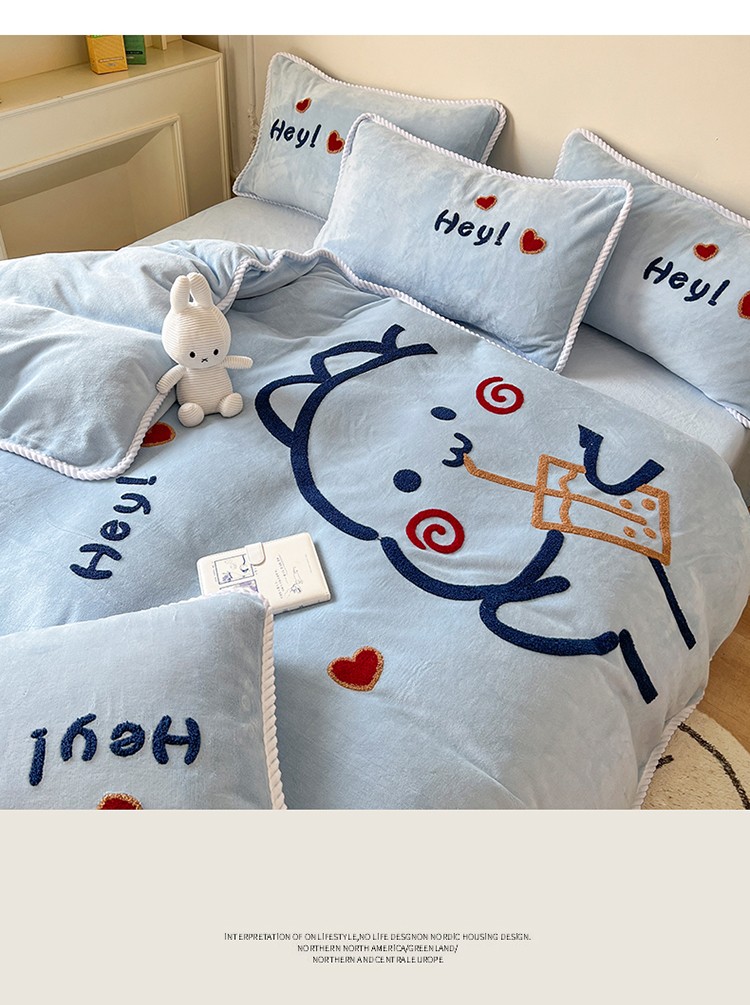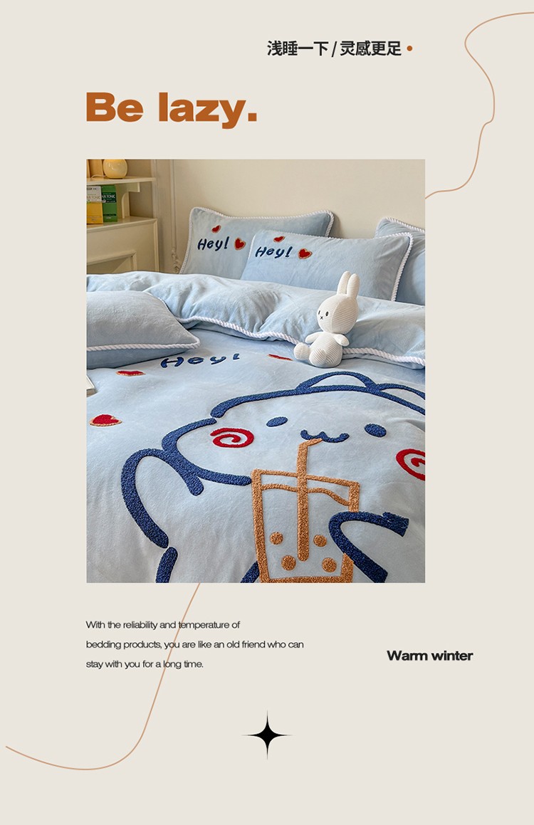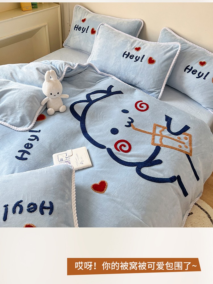 (总)芯贝儿 2025款加厚小清新花边牛奶绒卡通四件套,Q萌小熊,花园狗,蓝格小狗,萌宠派对,南瓜抱抱熊,甜心猫咪,星星宠物,元气猫咪,周末宠物园