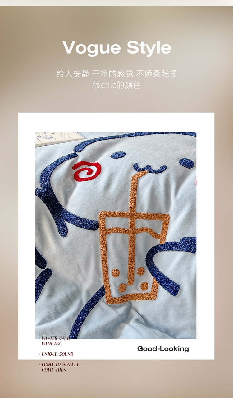 商品名称:芯贝儿 新款加厚保暖雕花牛奶绒毛巾绣花宝宝法莱绒四件套 恐龙宝贝-天蓝